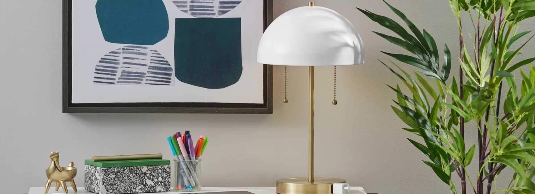 Humble yet hard-working, table lamps grace our nightstands, consoles, side tables, and other surfaces to bring ambiance and functionality to our homes. Unlike overhead lighting, table lamps bathe specific areas in soft, directed light that is ideal for reading, working, crafting, or simply relaxing. This targeted light reduces eye strain and creates a sense of coziness and warmth. Copenhagen’s table lamps, available in a variety of styles, materials, and finishes, will allow you to accessorize and brighten any space in your home. Try a retro-inspired lamp for a touch of vintage charm, a sleek minimalist lamp for modern style, or a lamp with a sculptural base that lets it double as a conversation piece. Many of our lamps also come with tech-forward features like touch switches and dimmer functions, letting you choose your perfect level of illumination with a simple tap.