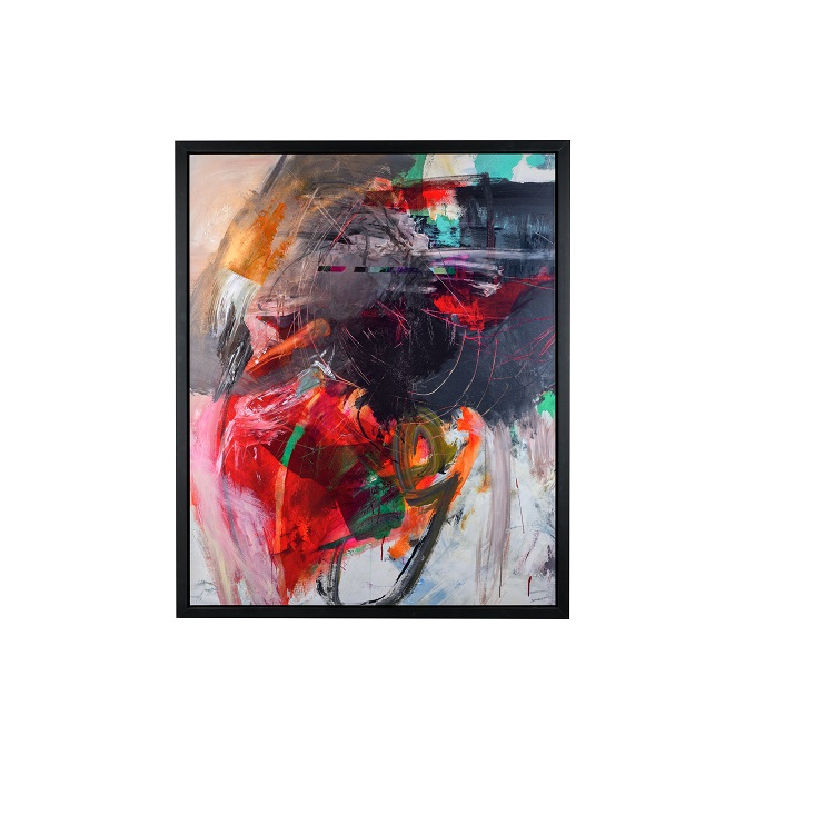 [0] => The Abalone Wall Art features a black frame and rich dark hues of red, orange, and black, accentuated with bright bursts of white, blue, and lavender. Sweeping, abstract brush strokes create a feeling of movement and controlled chaos, perfect for bringing a pop of color into your home or office space.