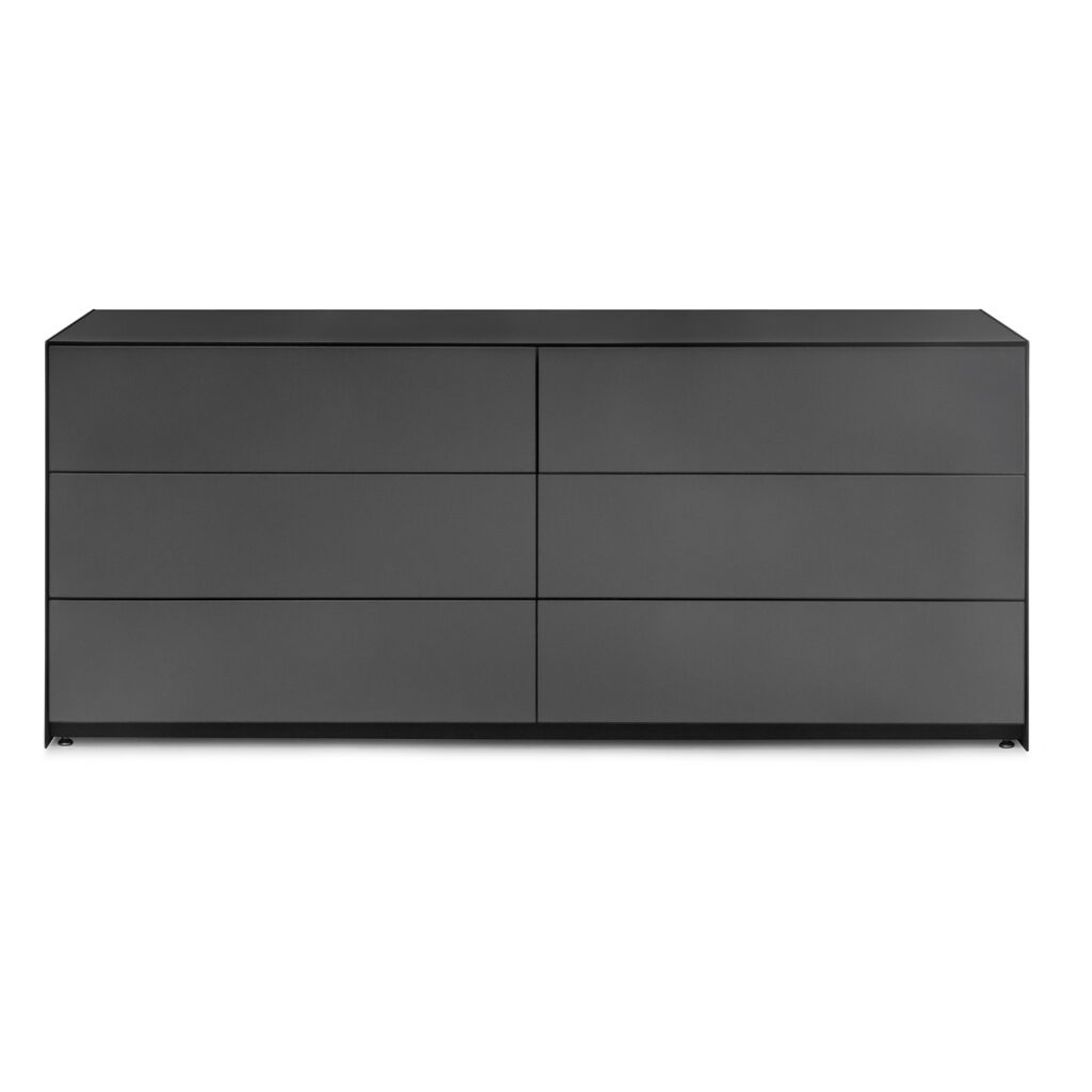 [0] => The Absolute Dresser embodies modern minimalism with its simplified design, carbon grey finish, and grey etched mirror glass top. Each of the six drawers has a push-to-open mechanism, and conceals a unique fabric design inside, adding a sense of chicness to your bedroom.