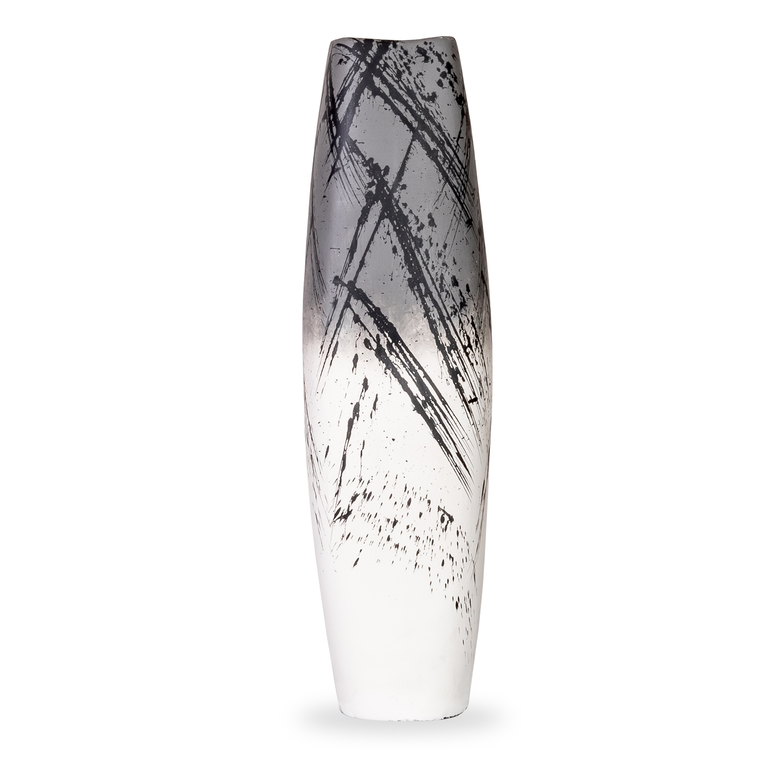 [0] => The Aceituna Cuadrado Vase, shown in Medium, will add a dash of boldness and drama wherever it stands. Made of ceramic with a lightly textured surface, Aceituna Cuadrado is painted in grey over its top half and off-white over its bottom half, then accented with strokes and splatters of black that instantly catch the eye. With its tall profile, square mouth, and monochrome color scheme, Aceituna Cuadrado will evoke the feel of modern art in your interior.