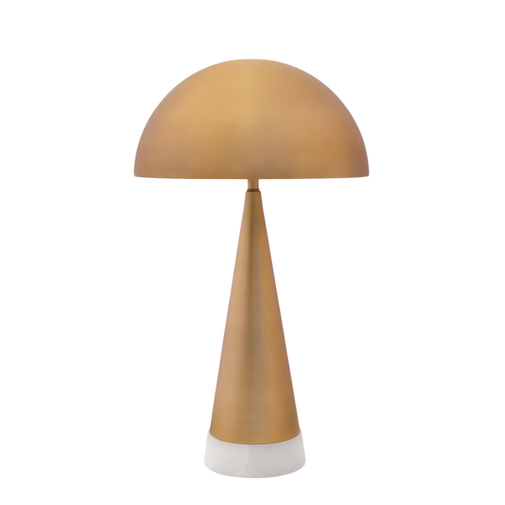 The Acropolis Lamp features an aged brass shade and frame with a marble base accent. Generously-sized and reminiscent of a dramatic roaring 20's party, this lamp is bold and perfect for any modern or mid-century modern space.