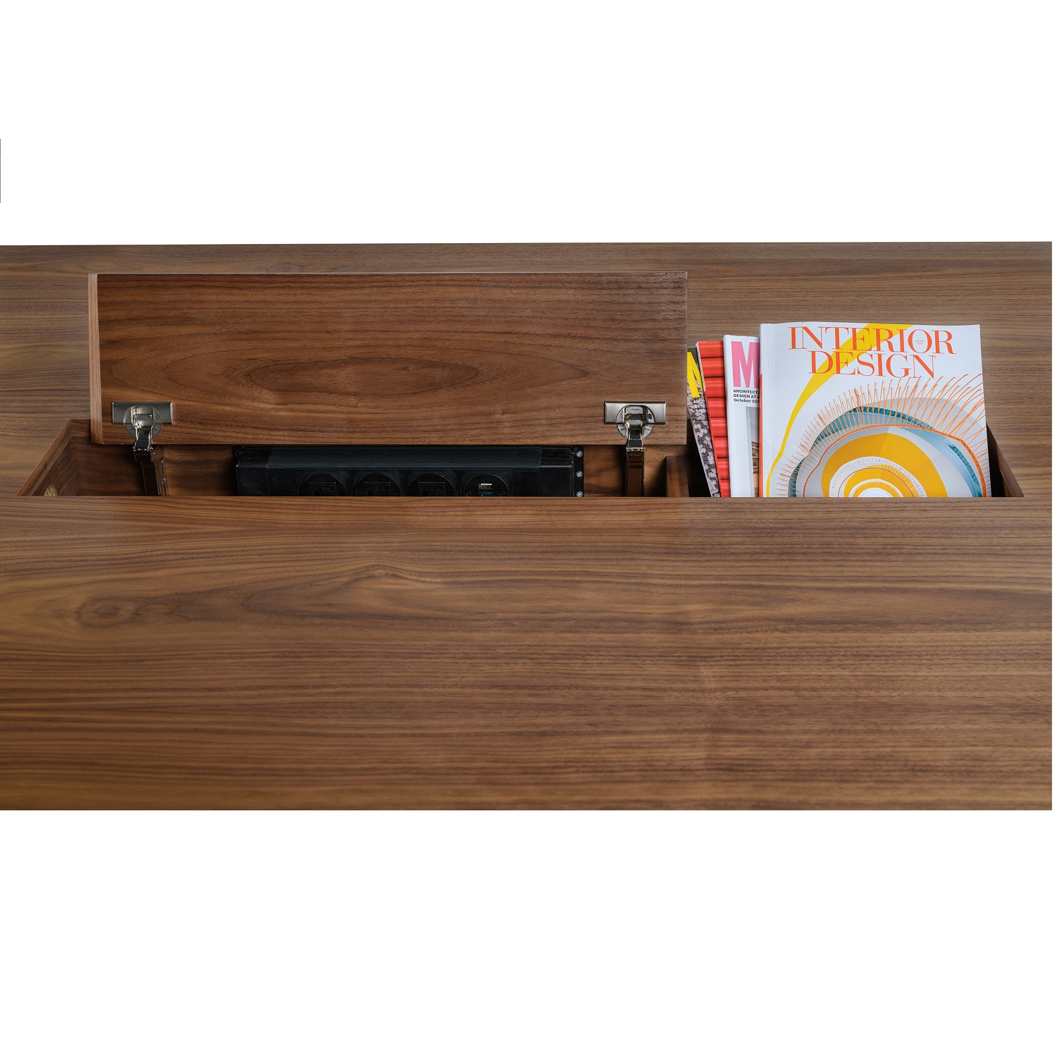 The Air Executive Meeting Table is a showstopper, with a natural walnut veneer tabletop and sculptural chrome legs. This piece features a power block with a small storage compartment, as well as open ends for extra storage. This table makes a crisp professional statement and is the ideal spot for your next conference or client meeting.