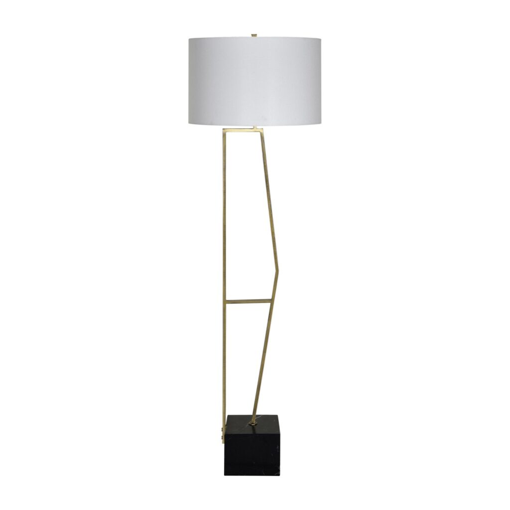 [0] => The Angie Floor Lamp, designed by Jennifer Attie, is a statement piece with a touch of Art Deco glam. A slim geometric body made of iron instantly catches the eye with its open shape and antique brushed brass finish. Meanwhile, a black marble base and off-white linen shade add contrasting touches. The Angie comes with a foot switch for your convenience.