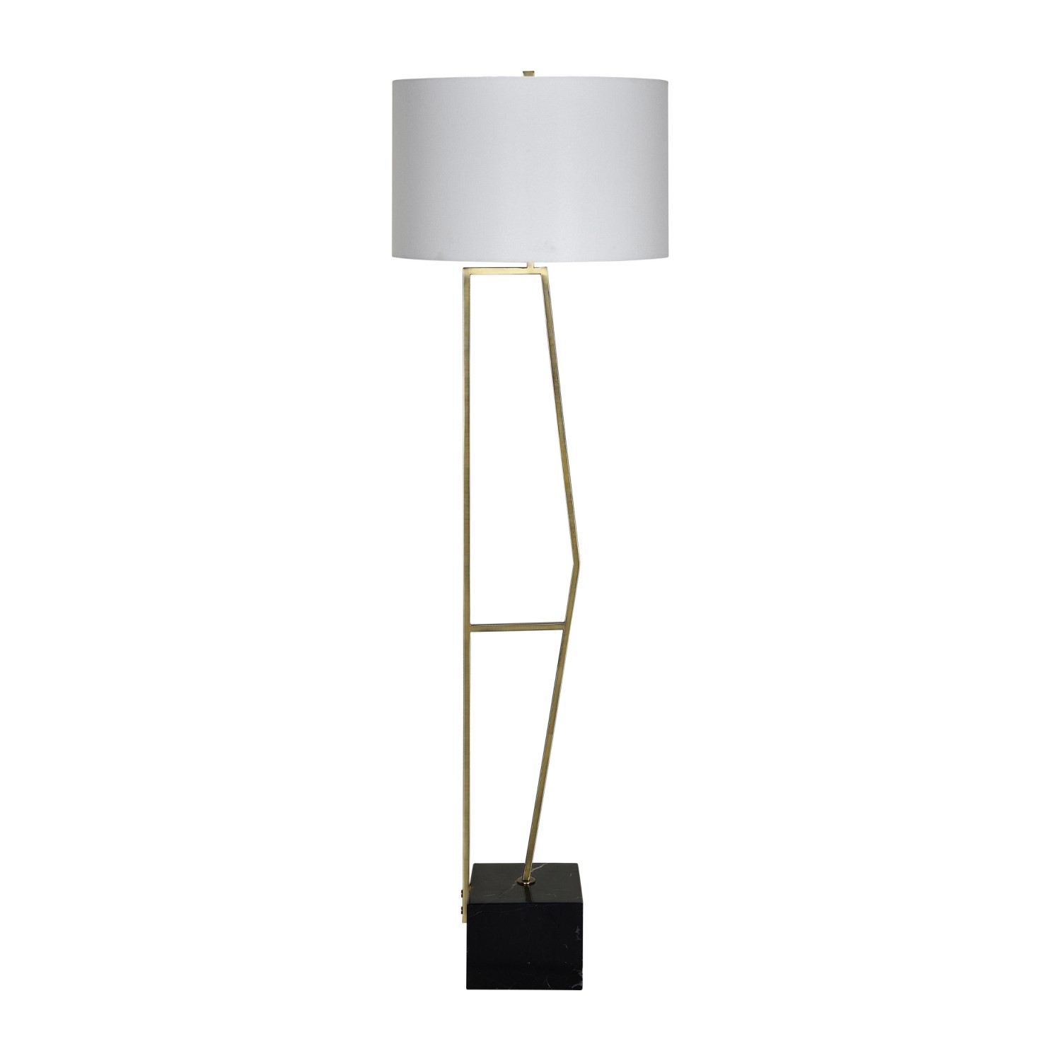 The Angie Floor Lamp, designed by Jennifer Attie, is a statement piece with a touch of Art Deco glam. A slim geometric body made of iron instantly catches the eye with its open shape and antique brushed brass finish. Meanwhile, a black marble base and off-white linen shade add contrasting touches. The Angie comes with a foot switch for your convenience.