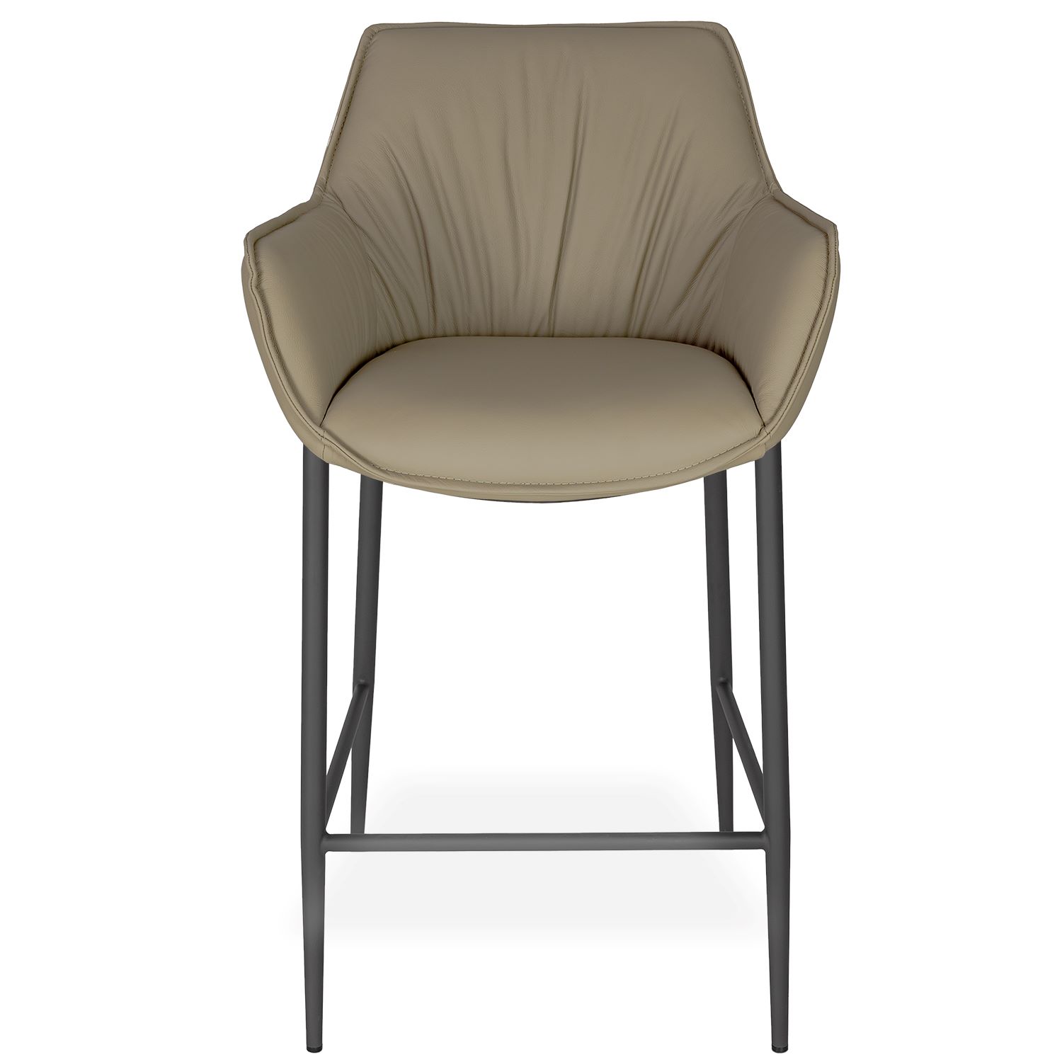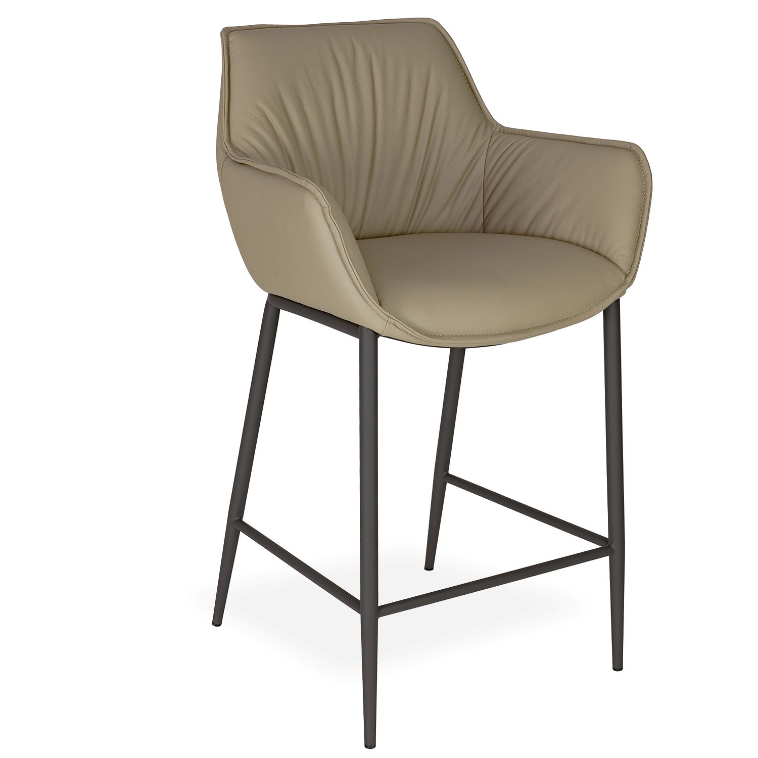 The Anita Counter Stool features a rounded shell design that curves in to form cradled arms and a gently-sloped seat. Upholstered in soft latte leather, Anita features accent stitching on the seat, back, and arms that adds a tailored finish, as well as a metal base formed by four cappuccino brown angled legs. Subtly playful and effortlessly comfortable, Anita will add instant style to your bar setup.