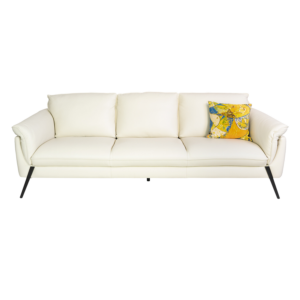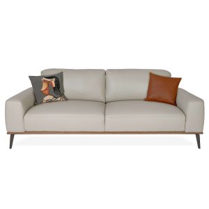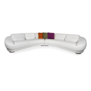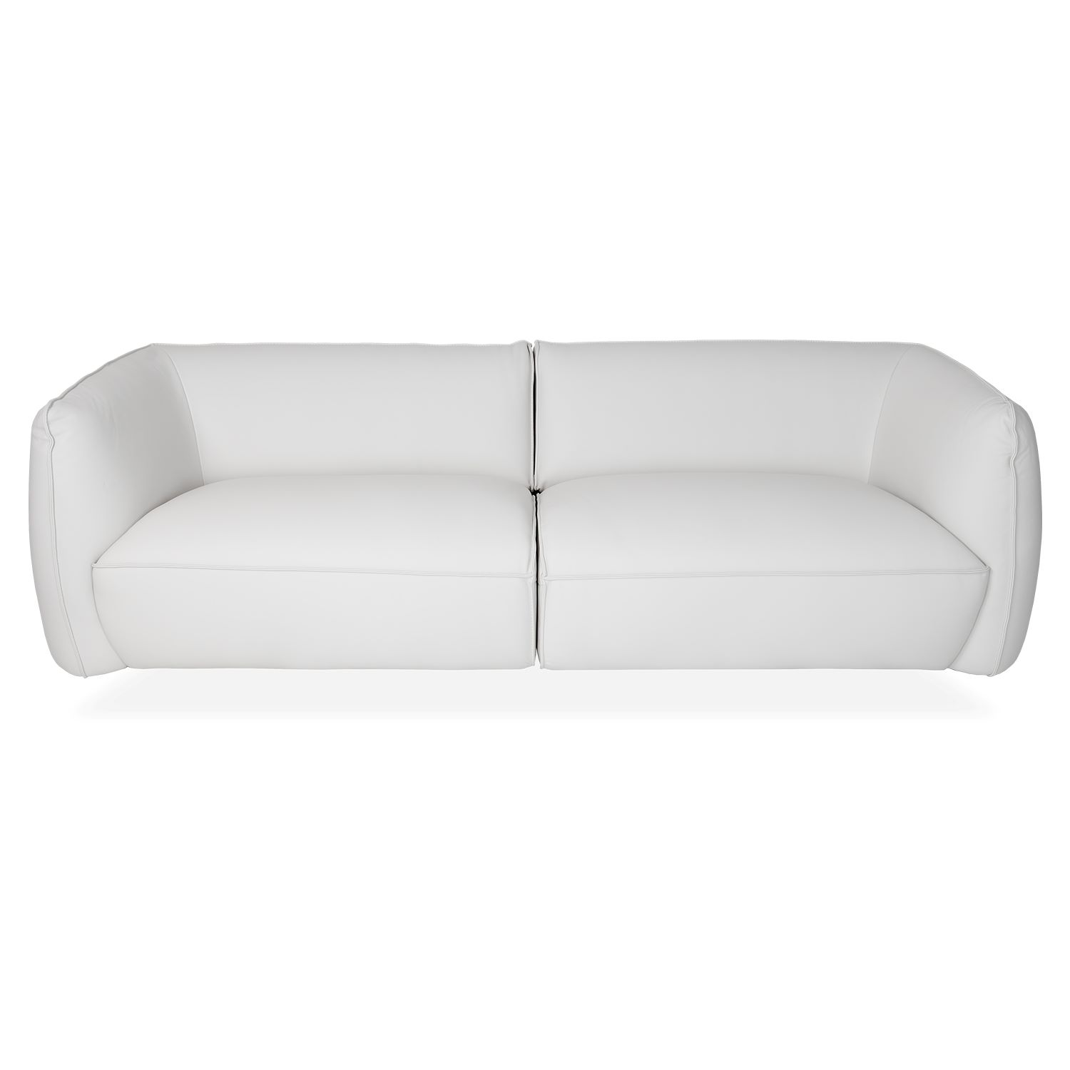[0] => Made in Italy, the Anzio Sofa features smooth off-white leather upholstery and a plush, rounded shape that evokes both retro and modern style. Two extra-wide seats invite you to lounge, offering a buoyant yet supportive feel thanks to the no-sag springs within. The soft curves and plump cushioning of the seats, back, and armrests are accentuated by inverted seams and supported by discreet black feet.