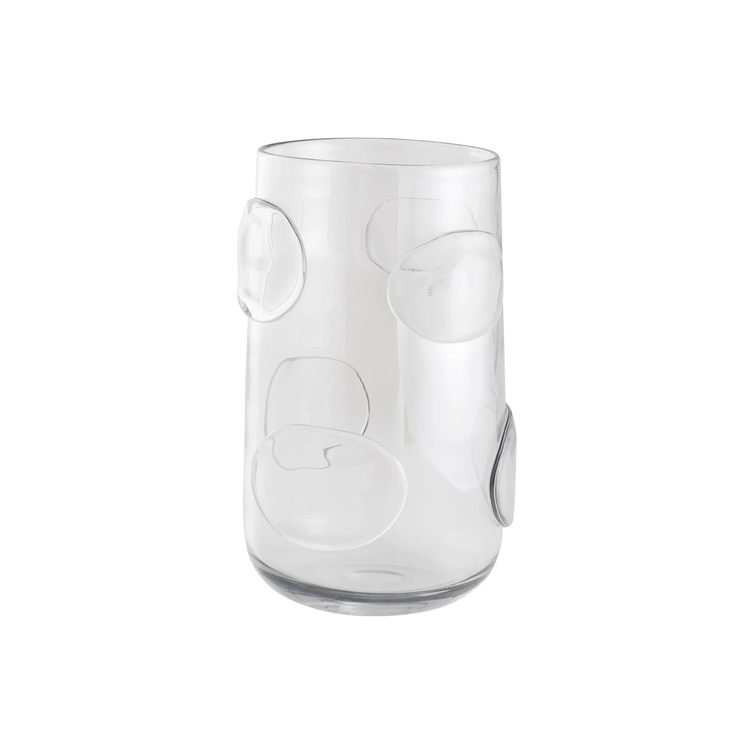 Handcrafted by skilled artisans, the Large Aquila Vase features rounded, raised shapes on its surface that give it a playful feel. Its cylindrical shape, transparent glass, and watertight construction make this vase ideal for displaying nearly any type of flowers or foliage you desire. Aquila is whimsical enough to catch the eye but subtle enough to fit into a wide range of interiors.