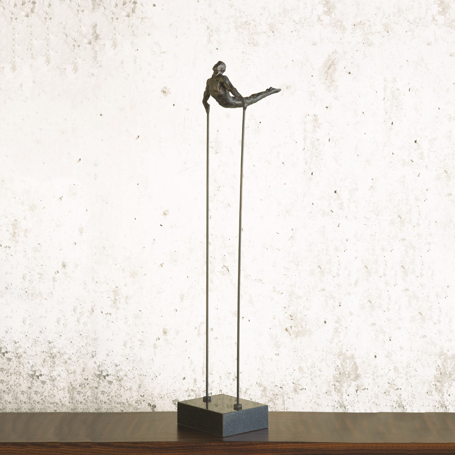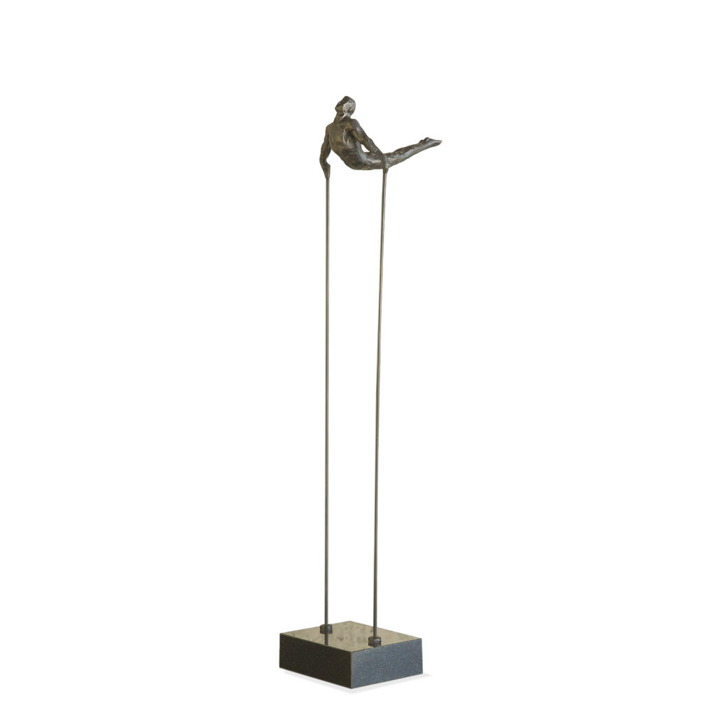 [0] => The Arched Back Acrobat sculpture demonstrates strength and grace, with a gravity-defying pose and narrow, minimalist supporting poles and base. The metallic finish adds an industrial, polished feel, and highlights the figure's athletic pose. This statue will be an eye-catching contemporary addition to your home or office space.