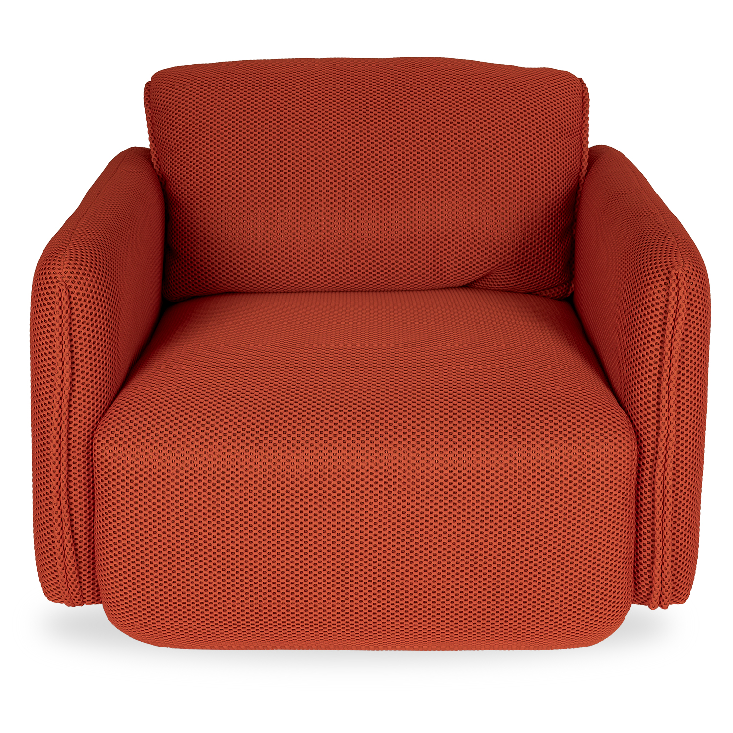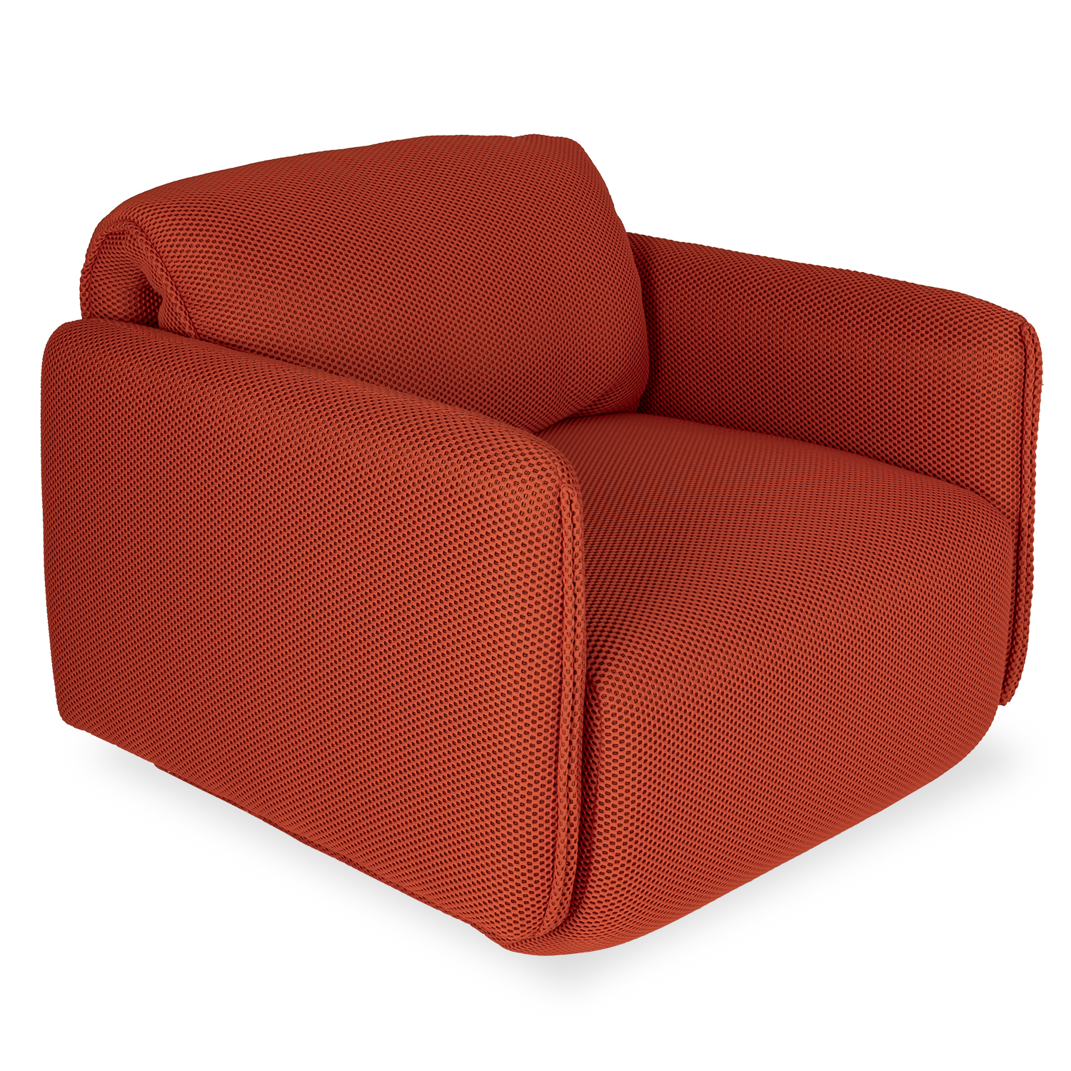 Add a spark of vibrancy to your space with the Arlo Swivel Chair, upholstered in a red toffee fabric with a fun texture. Arlo's cubic-shaped structure is softened by its rounded seat and back, both of which feature no sag spring support for a buoyant feel. Its 180 degree swivel base has a memory-return function, allowing it to spring back to its original position after you sit up, and accent piping on the back and arms creates a playful look. Arlo has a unique vibe that combines the best of retro and contemporary design.