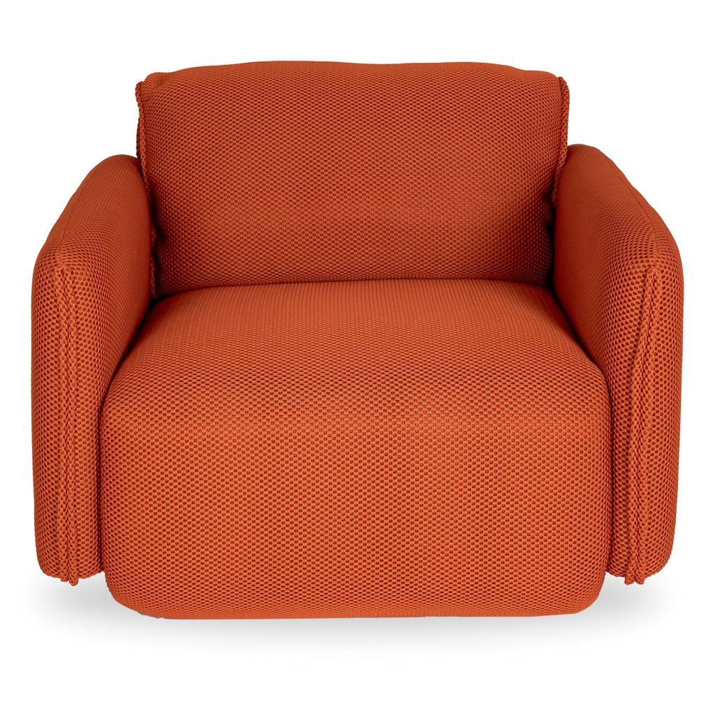 [0] => Add a spark of vibrancy to your space with the Arlo Swivel Chair, upholstered in a burnt orange fabric with a fun texture. Arlo's cubic-shaped structure is softened by its rounded seat and back, both of which feature no sag spring support for a buoyant feel. Its 180 degree swivel base has a memory-return function, allowing it to spring back to its original position after you sit up, and accent piping on the back and arms creates a playful look. Arlo has a unique vibe that combines the best of retro and contemporary design.