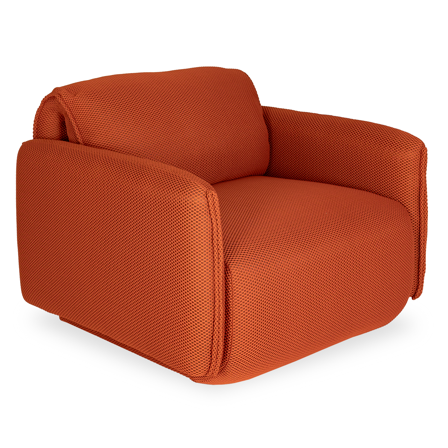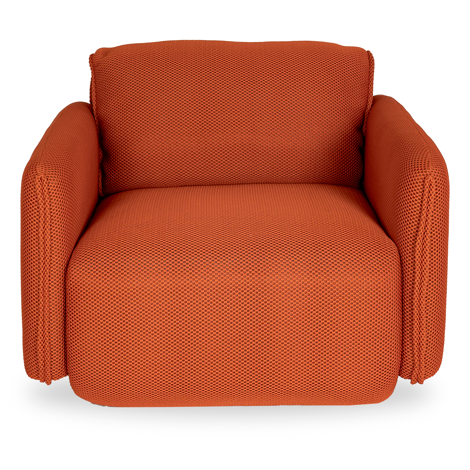 Add a spark of vibrancy to your space with the Arlo Swivel Chair, upholstered in a burnt orange fabric with a fun texture. Arlo's cubic-shaped structure is softened by its rounded seat and back, both of which feature no sag spring support for a buoyant feel. Its 180 degree swivel base has a memory-return function, allowing it to spring back to its original position after you sit up, and accent piping on the back and arms creates a playful look. Arlo has a unique vibe that combines the best of retro and contemporary design.