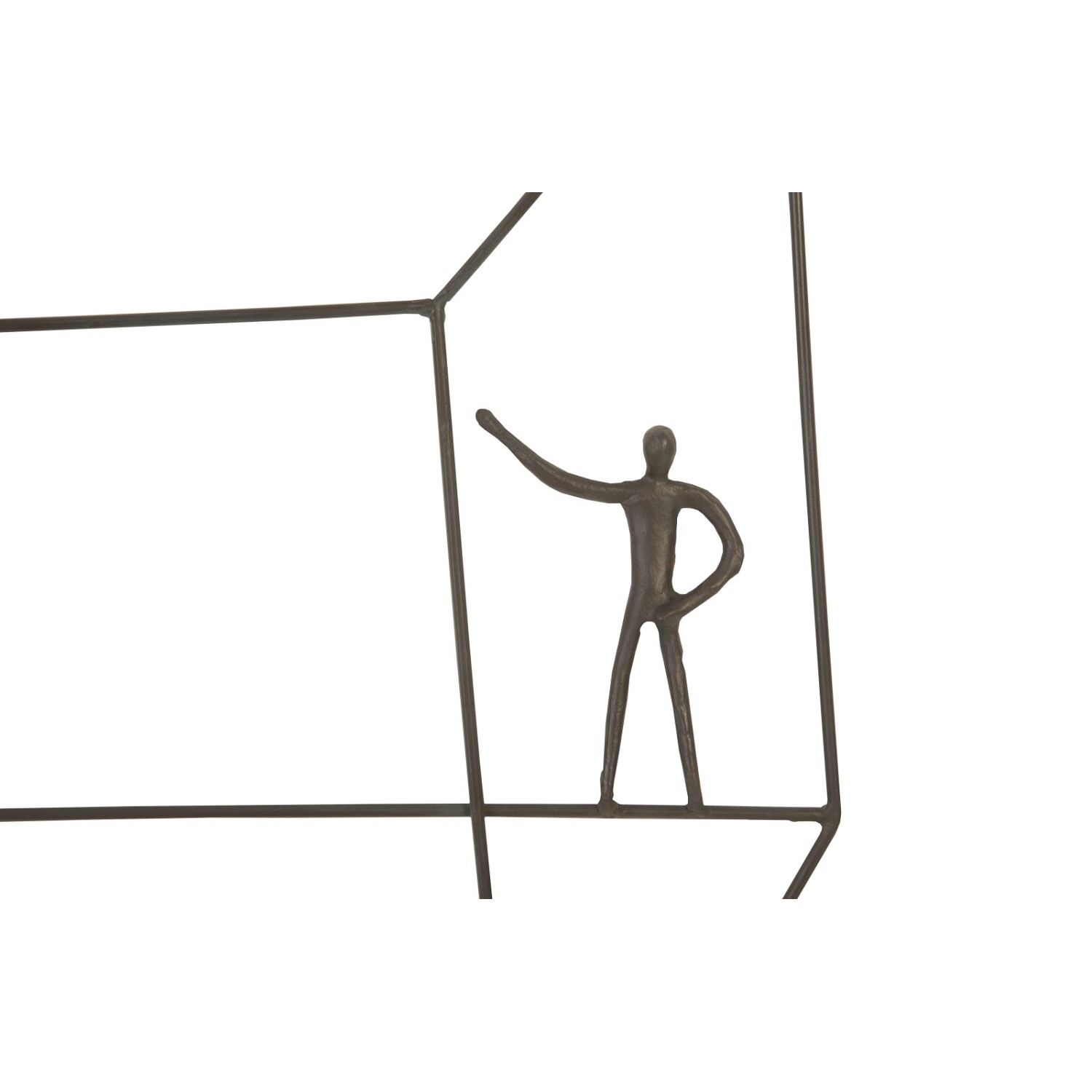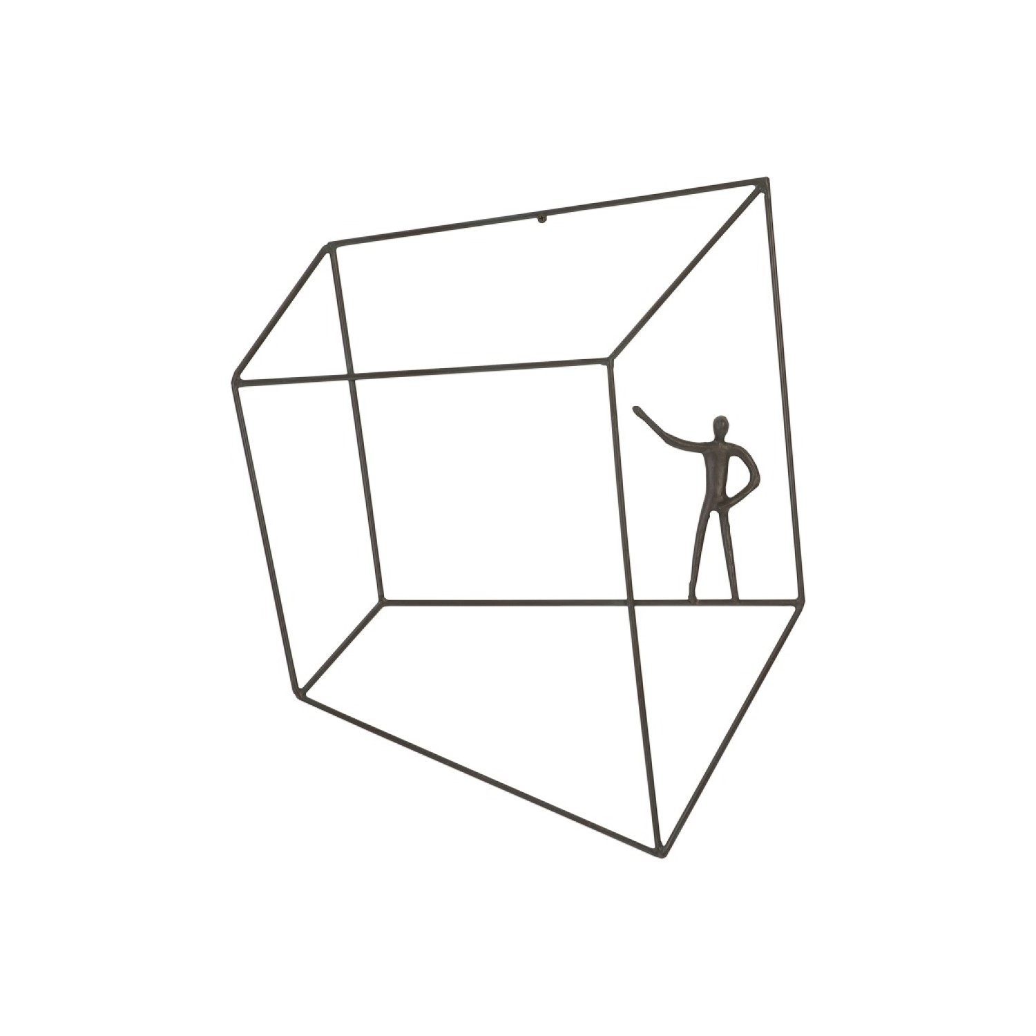 The Arms Up Perspective Wall Art features a figure of a person with an arm raised in greeting in an asymmetrical square wire cage, with morphed angles and a manipulated perspective that plays with the eye. Whether displayed by itself or alongside the other items in the Perspective collection, this decorative wall structure will bring a chic, three-dimensional element to any home.
