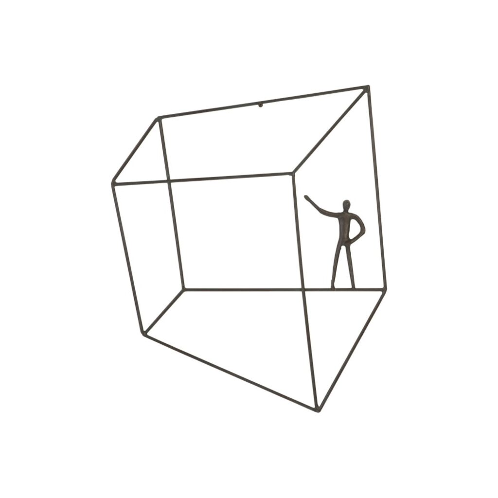 [0] => The Arms Up Perspective Wall Art features a figure of a person with an arm raised in greeting in an asymmetrical square wire cage, with morphed angles and a manipulated perspective that plays with the eye. Whether displayed by itself or alongside the other items in the Perspective collection, this decorative wall structure will bring a chic, three-dimensional element to any home.