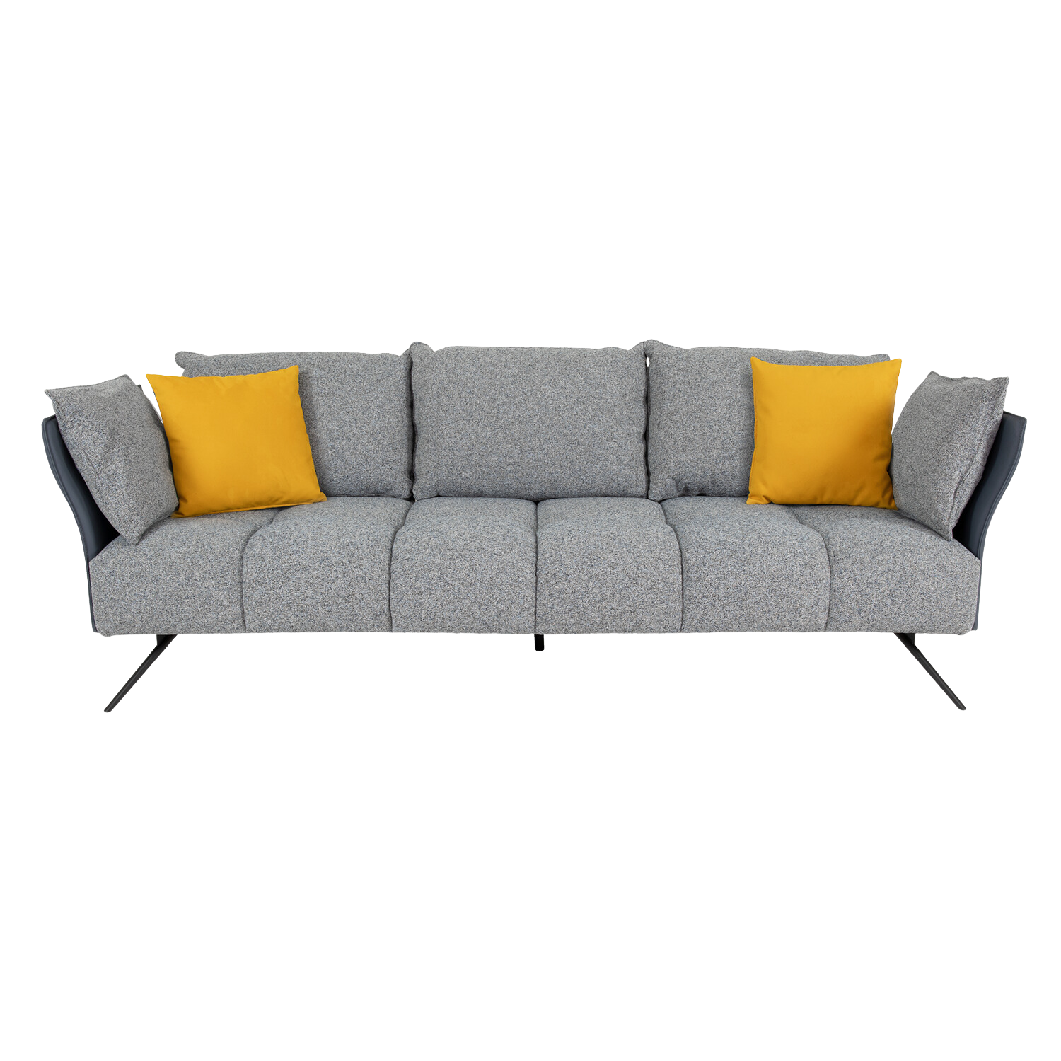 [0] => asti sofa - 700 caleido grey fabric cushions / 1150 grey luna leather sides & back, black matt leg