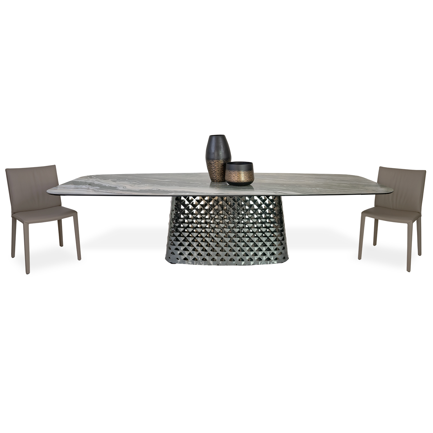 [description] => Tyron Keramik Drive Table 200cm X 106cm, Top In Glossy Borghini Clalcatta, Base Gfm11 Titanium.