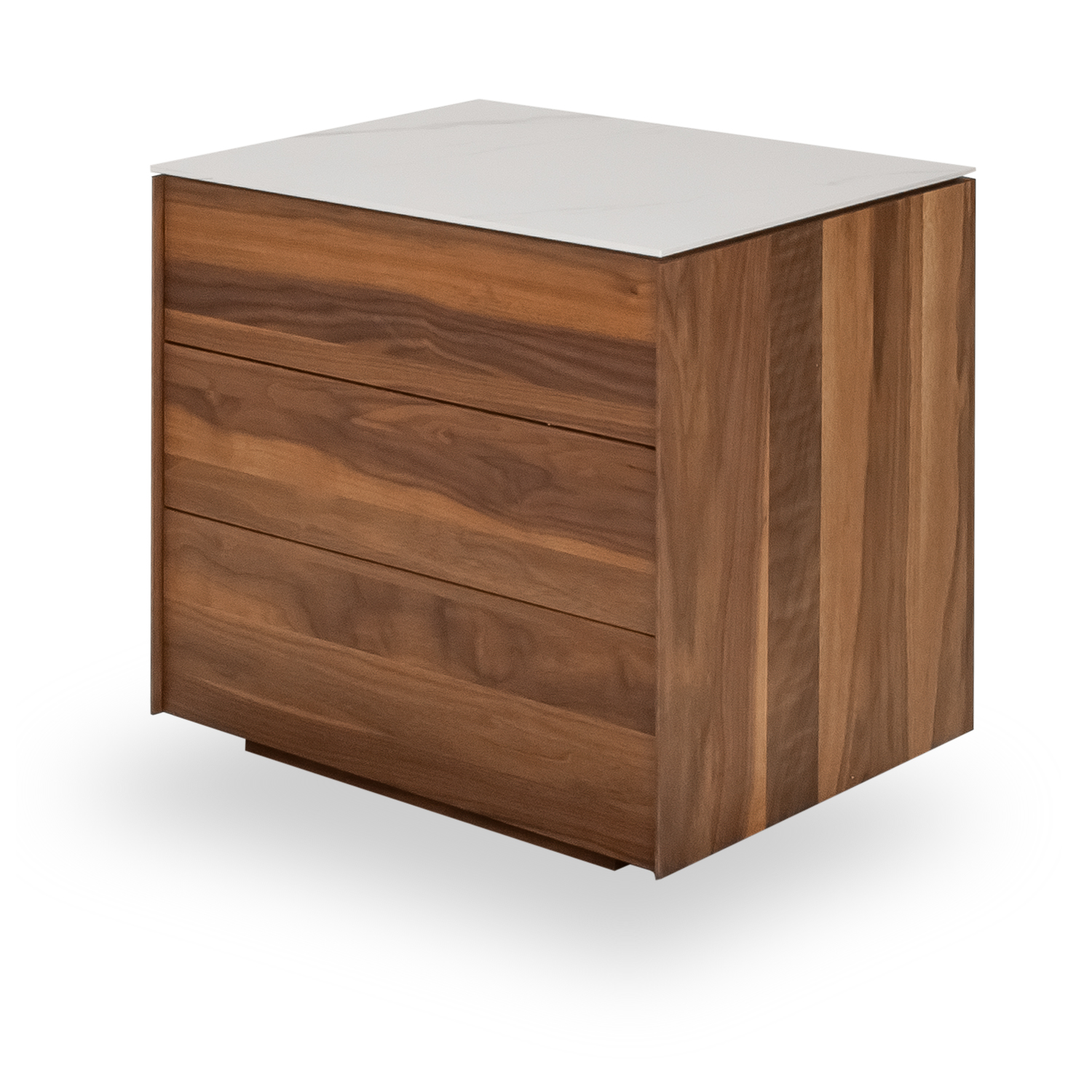 [0] => The Avita Night Table features a classic smoked walnut finish with an elegant, contrasting white porcelain top. Avita's three drawers open with a simple push to allow you to keep reading materials, valuables, and other bedroom accessories close at hand. With a minimalist and streamlined design, Avita will harmonize with virtually any design aesthetic.