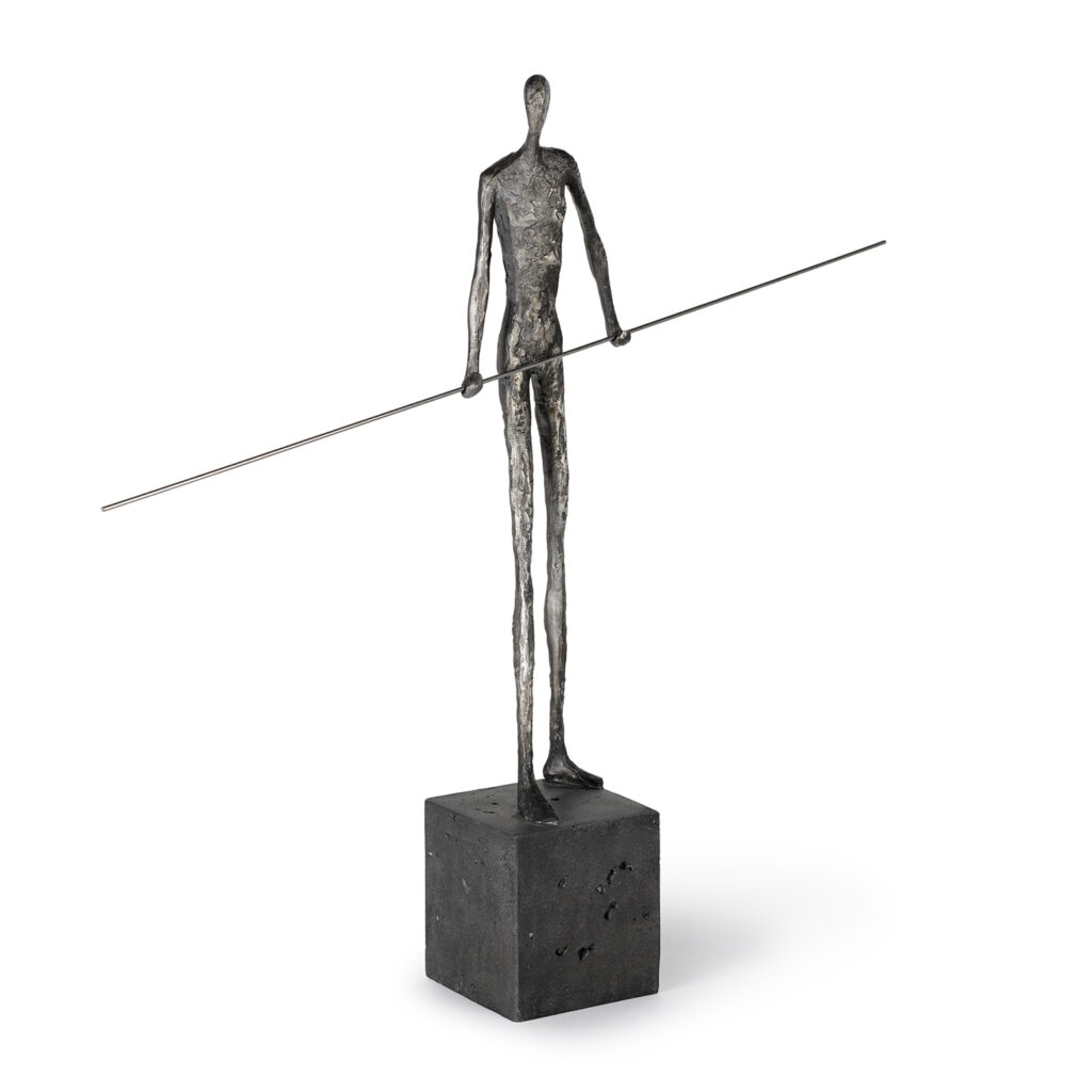 [0] => The Balancing Act Figure Statue represents the beauty and strength of the human form and soul. Both abstract and detailed, this piece features a rich antique silver pewter finish, creating a play of light and shadow to form an athletic figure ready to push the boundaries of balance and the body. Set on a textured black base, this statue will bring energy and inspiration into your living or office space.