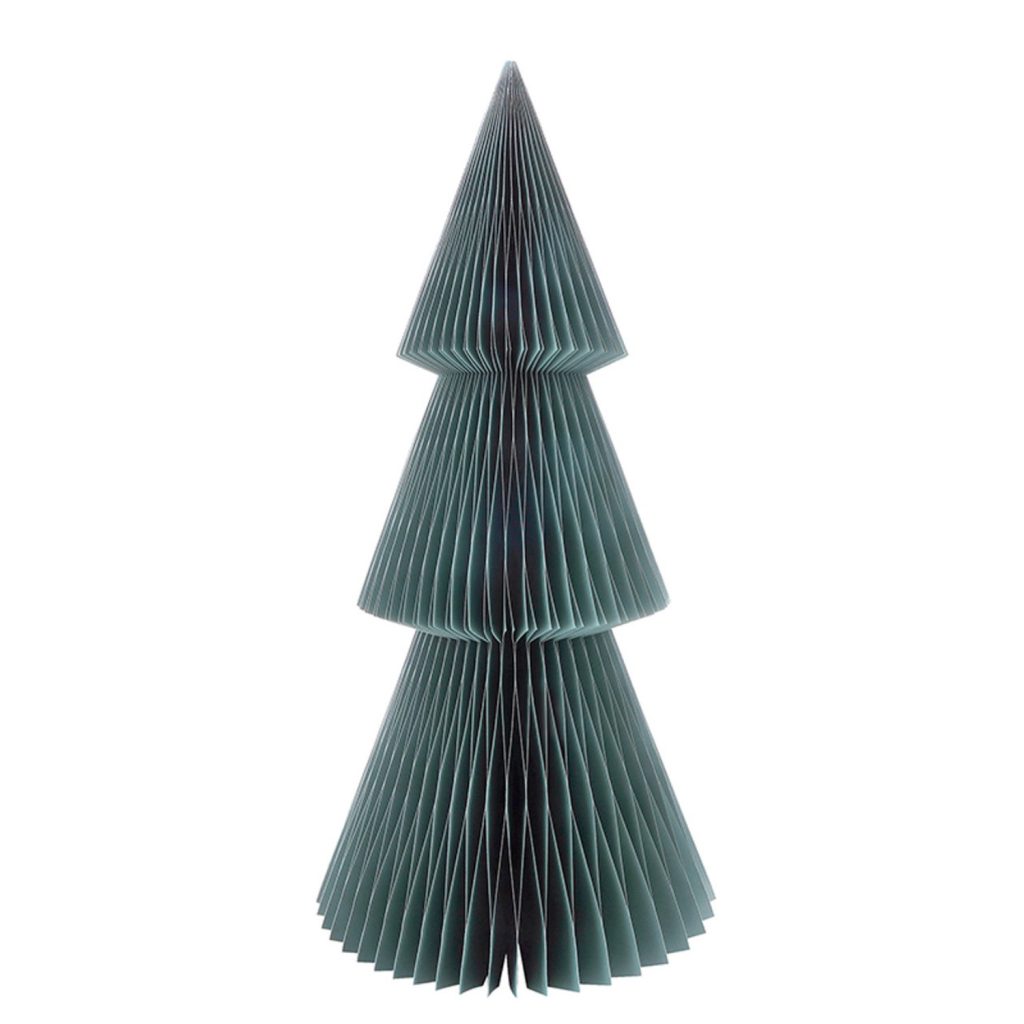 This 24-inch Balsam fir blue paper tree adds a simple, modern touch to holiday decorating. Its honeycomb design opens into a full, sculptural shape that works well next to a fireplace, or as a tabletop accent. Built-in magnets make it easy to assemble, fold, and store away. Mix and match this tree with others of its kind for an easy way to add color and texture to any holiday display.
