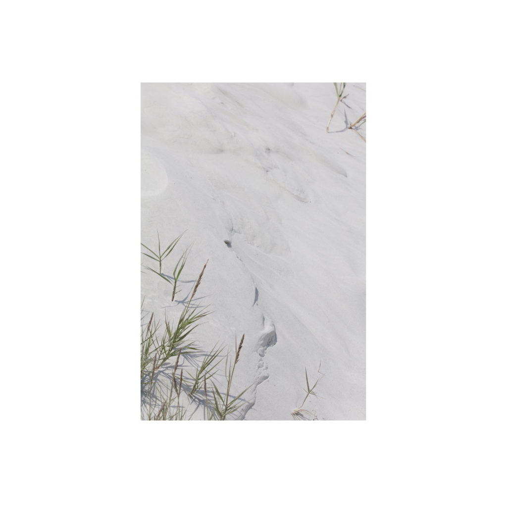 The Beach Sand Wall Art is a minimalist close-up that depicts soft white sand framed by plants. Subtle patterns in the sand show texture, while the bright green plants offer subtle contrast to the neutral tones of the sand. Beach Sand Wall Art is perfect for any contemporary space.