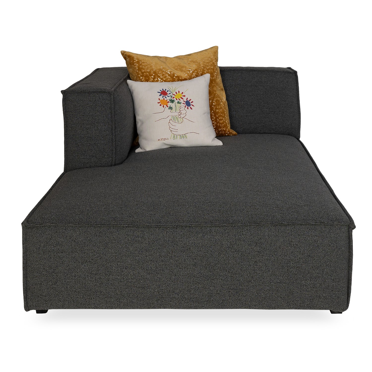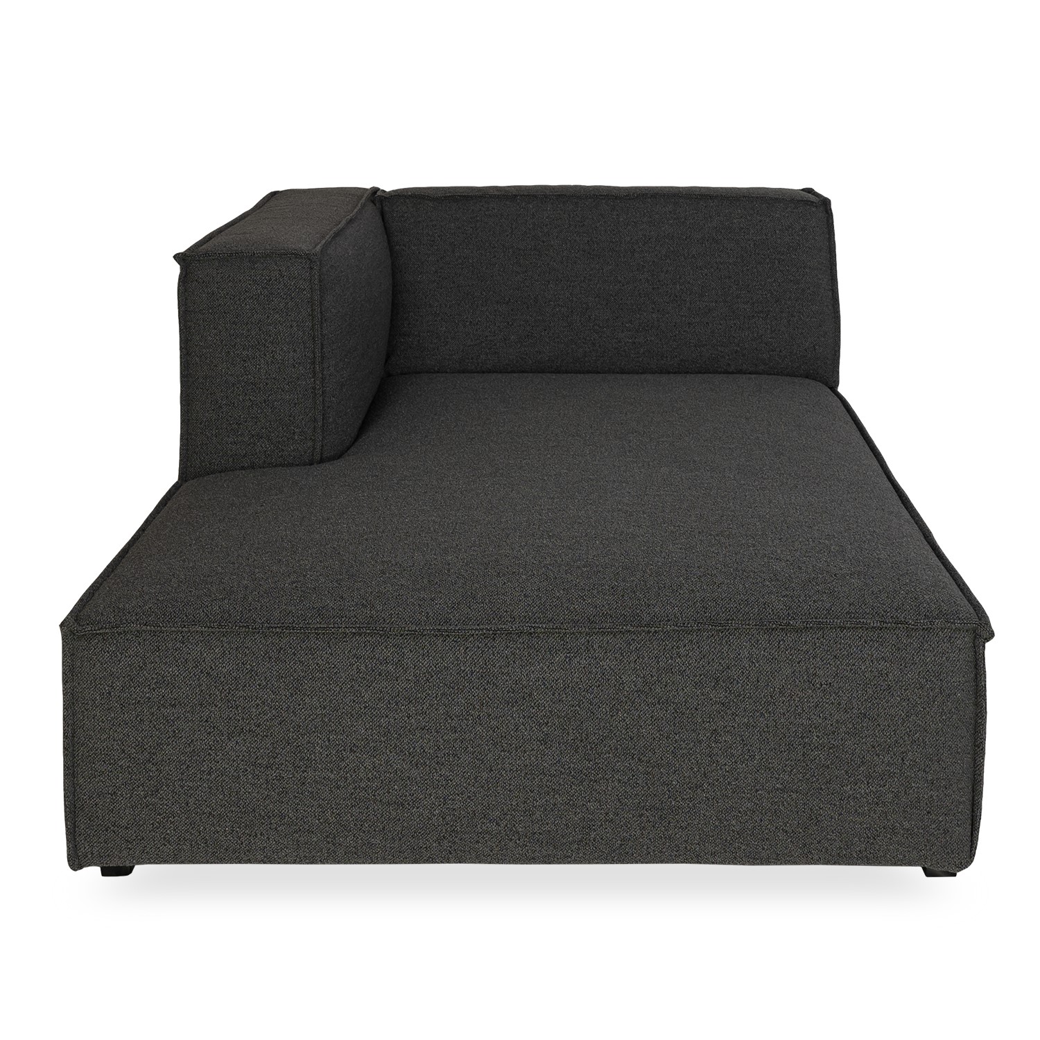 The Beacon Left Chaise features a structured, geometric look with tailored lines and deep grey Crush fabric upholstery. With a wide, cushioned seat, and broad arms, Beacon makes a distinct yet versatile design statement, further heightened by welt stitching and a subtle corded texture. Use the Beacon chaise on its own or mix and match with other pieces in the Beacon collection to form a customized, modular sofa or sectional.