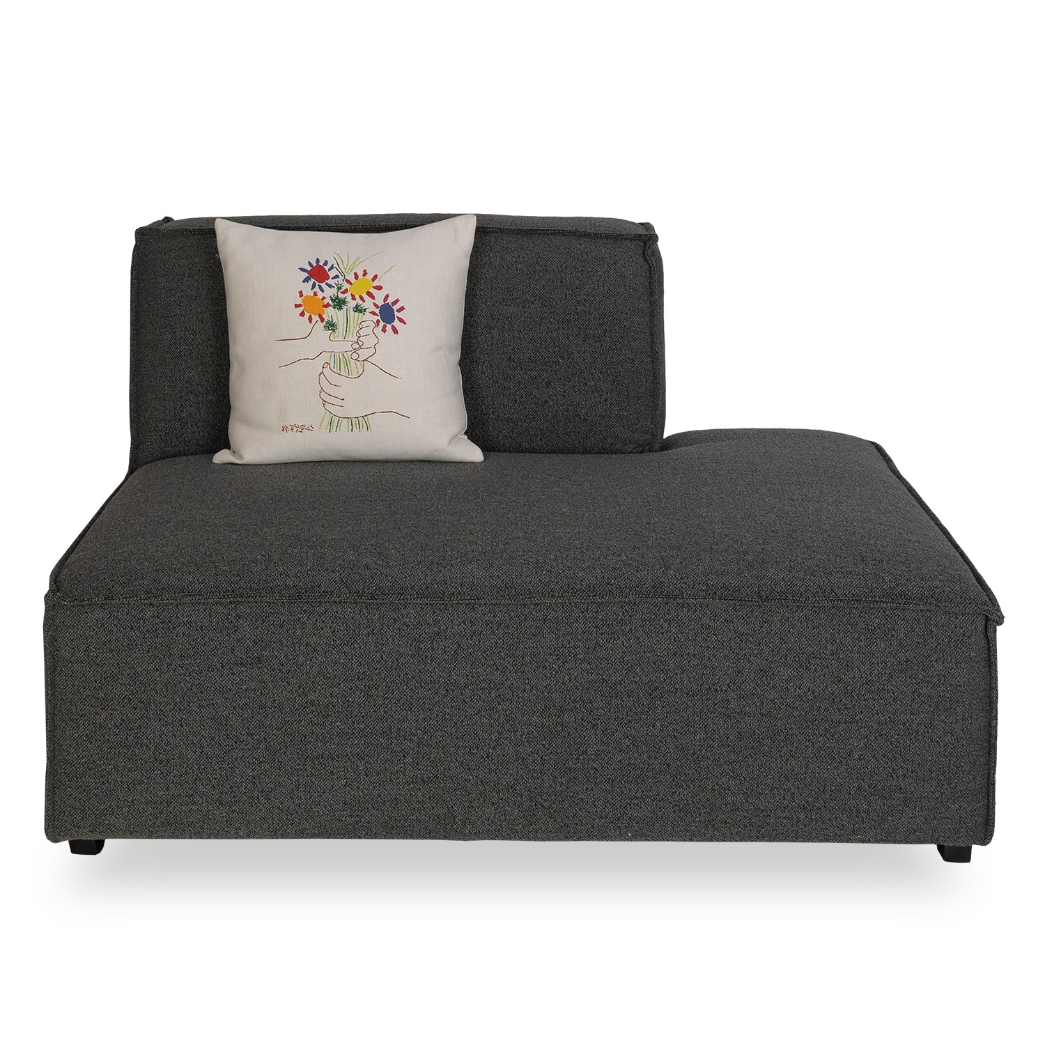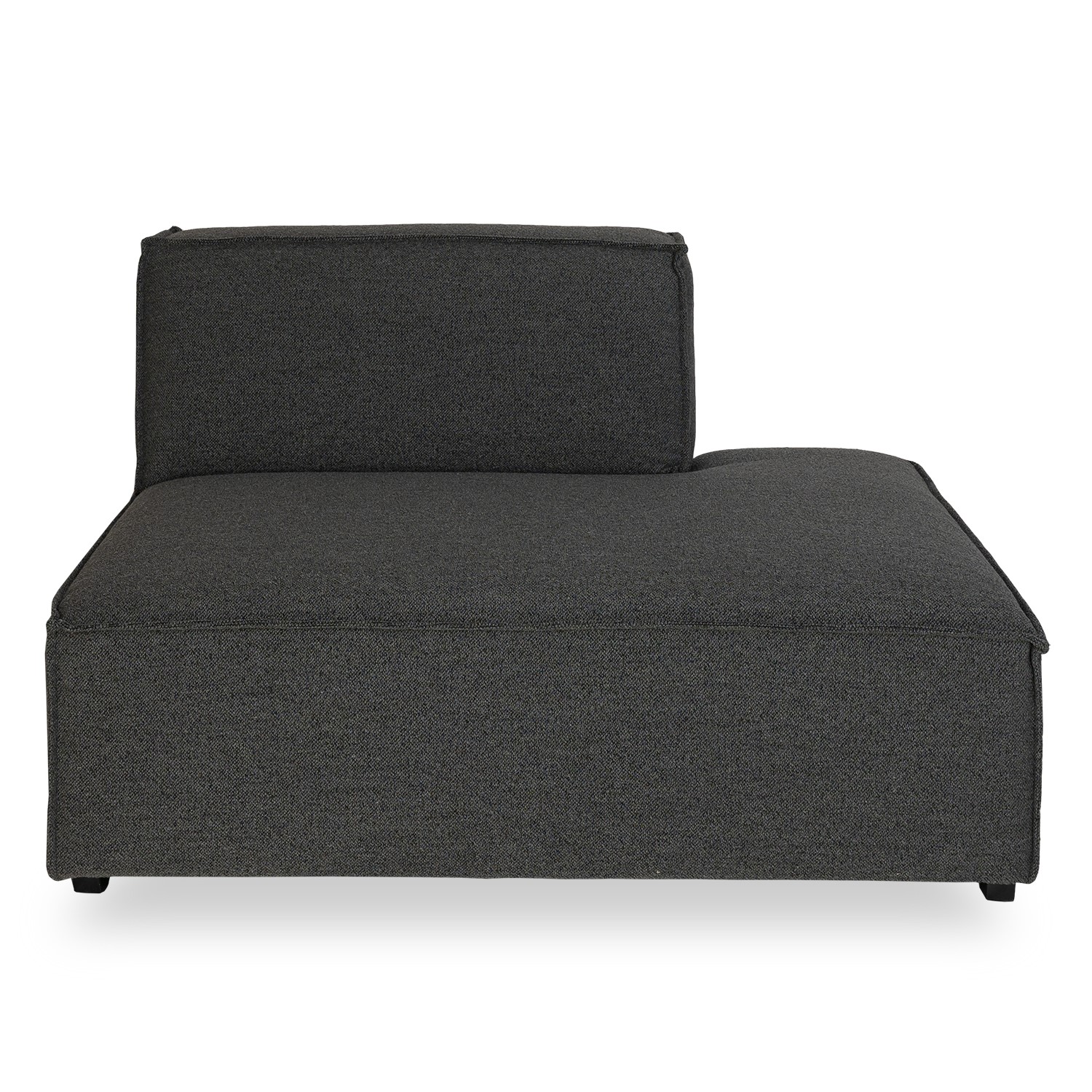 The Beacon Right Open Chair features a structured, geometric look with tailored lines and deep grey Crush fabric upholstery. With a wide, cushioned seat, and broad arms, Beacon makes a distinct yet versatile design statement, further heightened by welt stitching and a subtle corded texture. Use the Beacon chaise on its own or mix and match with other pieces in the Beacon collection to form a customized, modular sectional.