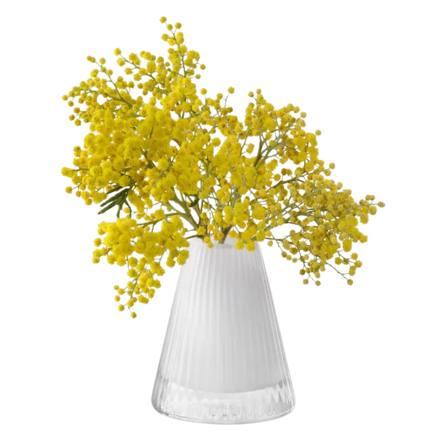 The Beacon Short Candleholder Vase brings clean and functional style to your table with its modular, multipurpose design. Beacon features a mouth-blown glass body in chalk white with a conical form and pleated texture. A powder-coated steel insert in matching white can hold a taper candle or be removed to let the glass base function as a vase. Group with other items in the Beacon collection to bring layered warmth to your modern living or dining area.
