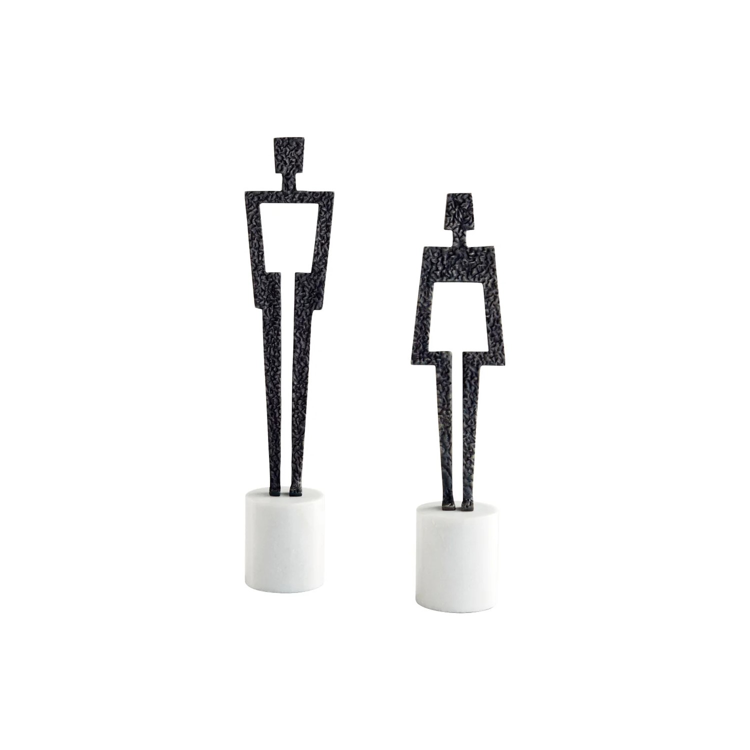 Designed by J. Kent Martin, the Beatrice Sculpture forms a duo with the Benedict Sculpture to pay homage to the iconic couple from Shakespeare's Much Ado About Nothing. This sculpture features a simplified female silhouette made of hand-hammered steel with an antique bronze finish. A cylindrical white marble base lets Beatrice be displayed with ease on any flat surface.