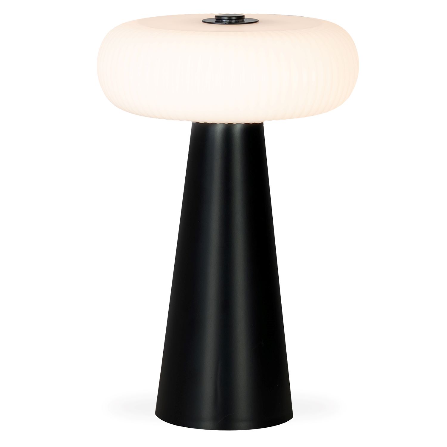 [0] => The Beckham Cordless LED Table Lamp has a compact, lightweight design with a unique silhouette and the ability to be used indoors or outdoors. Beckham features a conical base made of black plastic, topped by a circular, textured white shade. A dimmable touch switch atop the shade lets you choose between 3 brightness settings, while an included charging cord lets you recharge the LED bulb. Beckham is suitable for outdoor use and carries an IPX4 rating for resistance to splashing water, making it a versatile choice for everything from outdoor dining to pool parties, to lighting up your favorite nook.