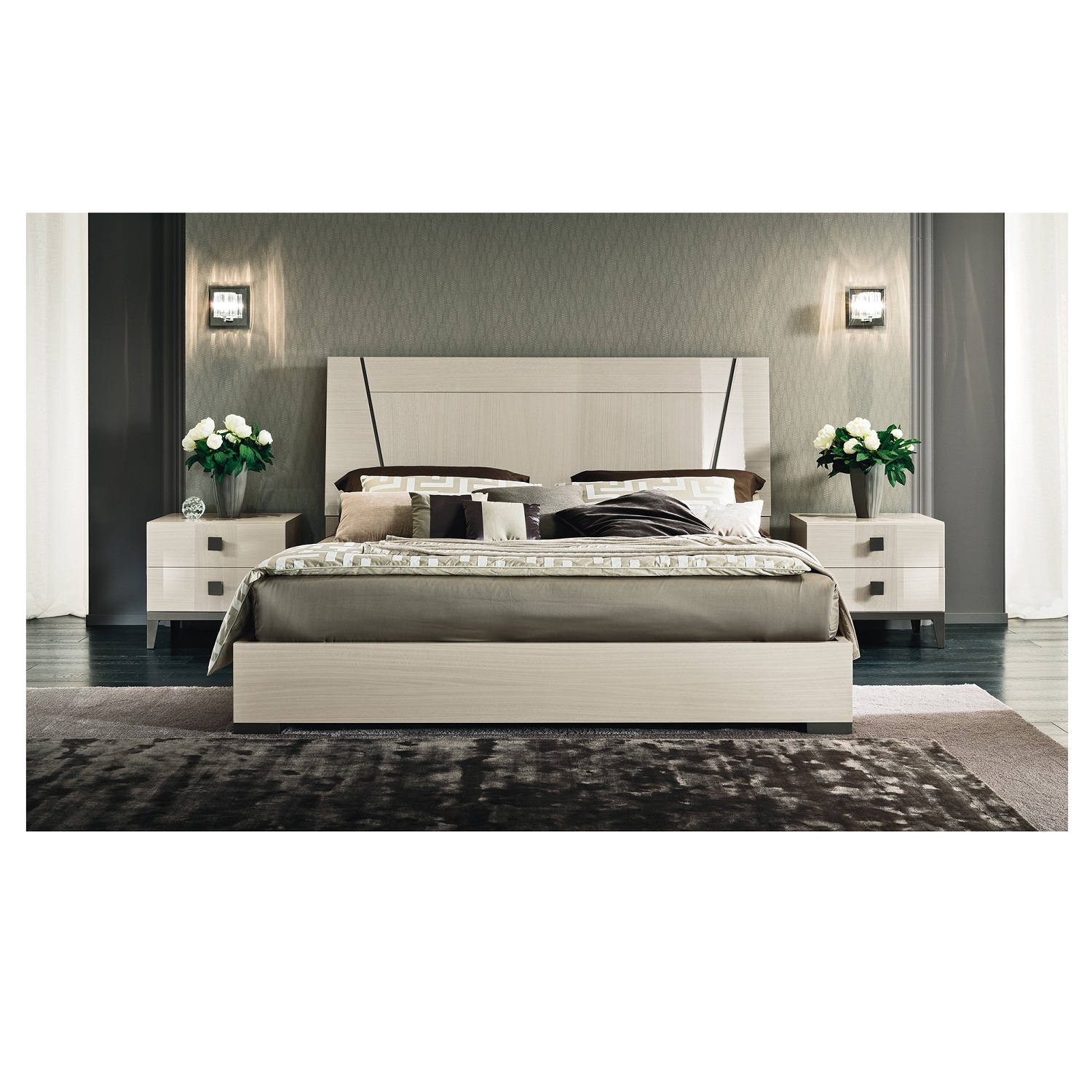 The Bella Avorio California king bed is a stunning contemporary bed with sharp, clean lines and beautiful Koto high gloss finish. The architectural detailing along the headboard brings attention to the beauty and elegance of the light Koto gloss finish.