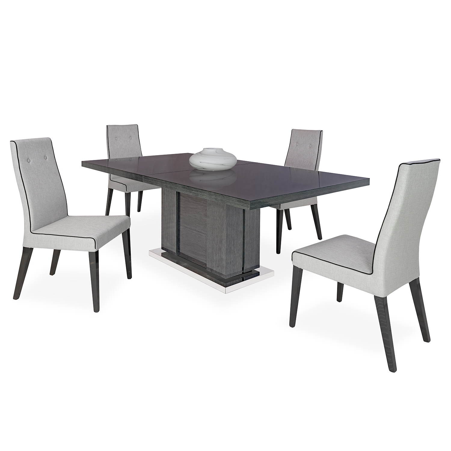 [0] => bella grigio dining table 77x42.5" w/1 leaf extends to 98" high gloss grey koto - design: flavio da fre