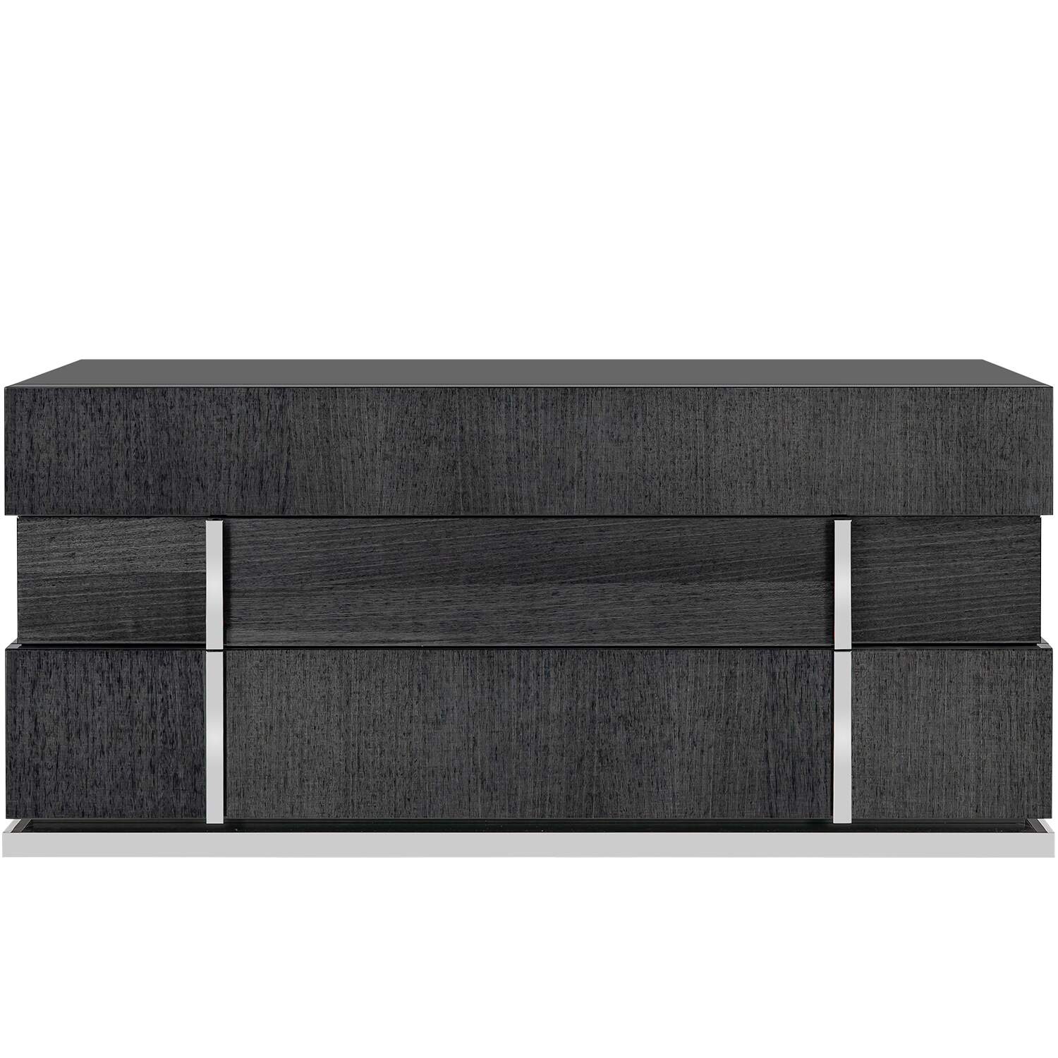 The Bella Grigio double dresser, made in Italy, is a stunning contemporary dresser in dark grey high gloss koto wood. This dresser has three spacious drawers and an eye-catching metal accent placed elegantly on each side.