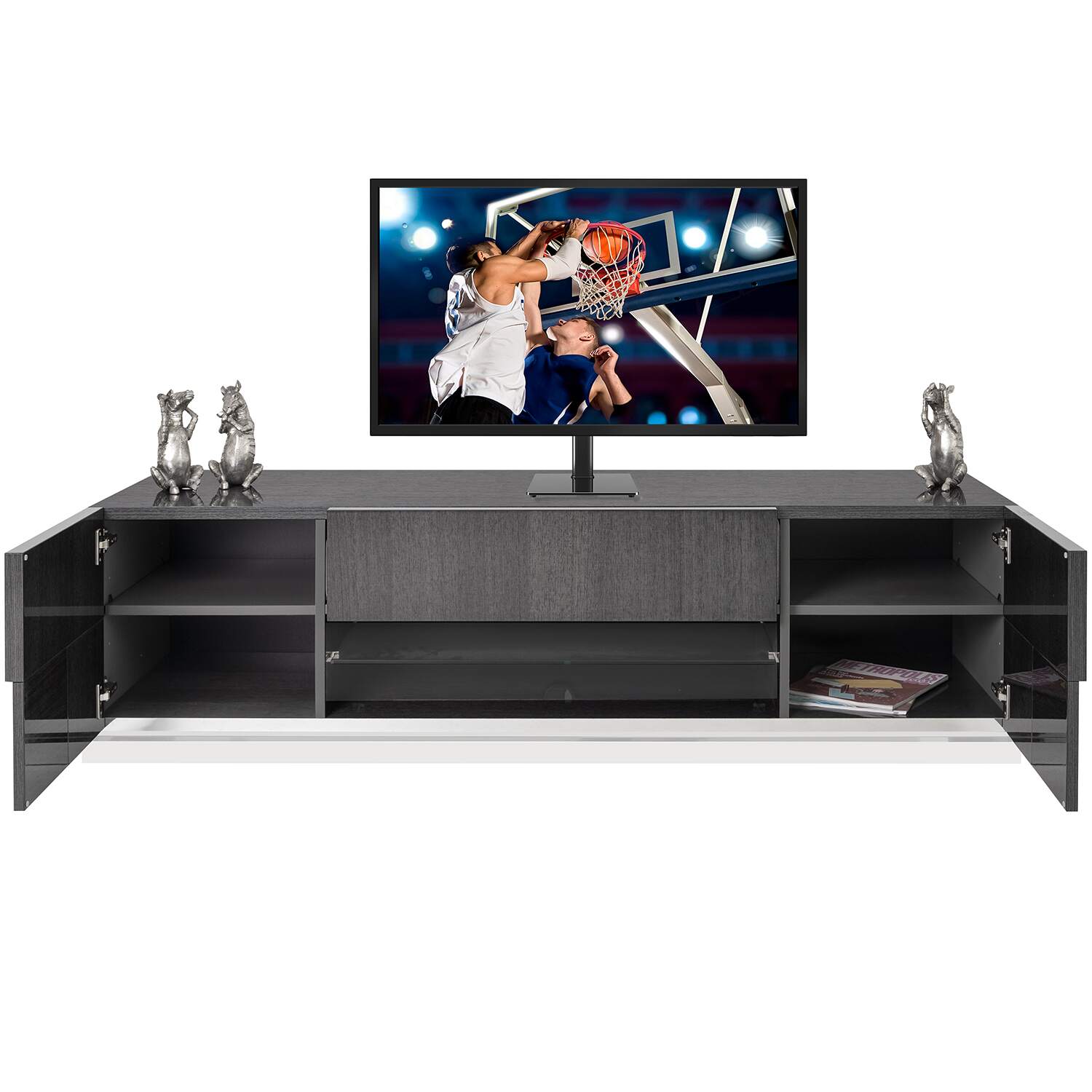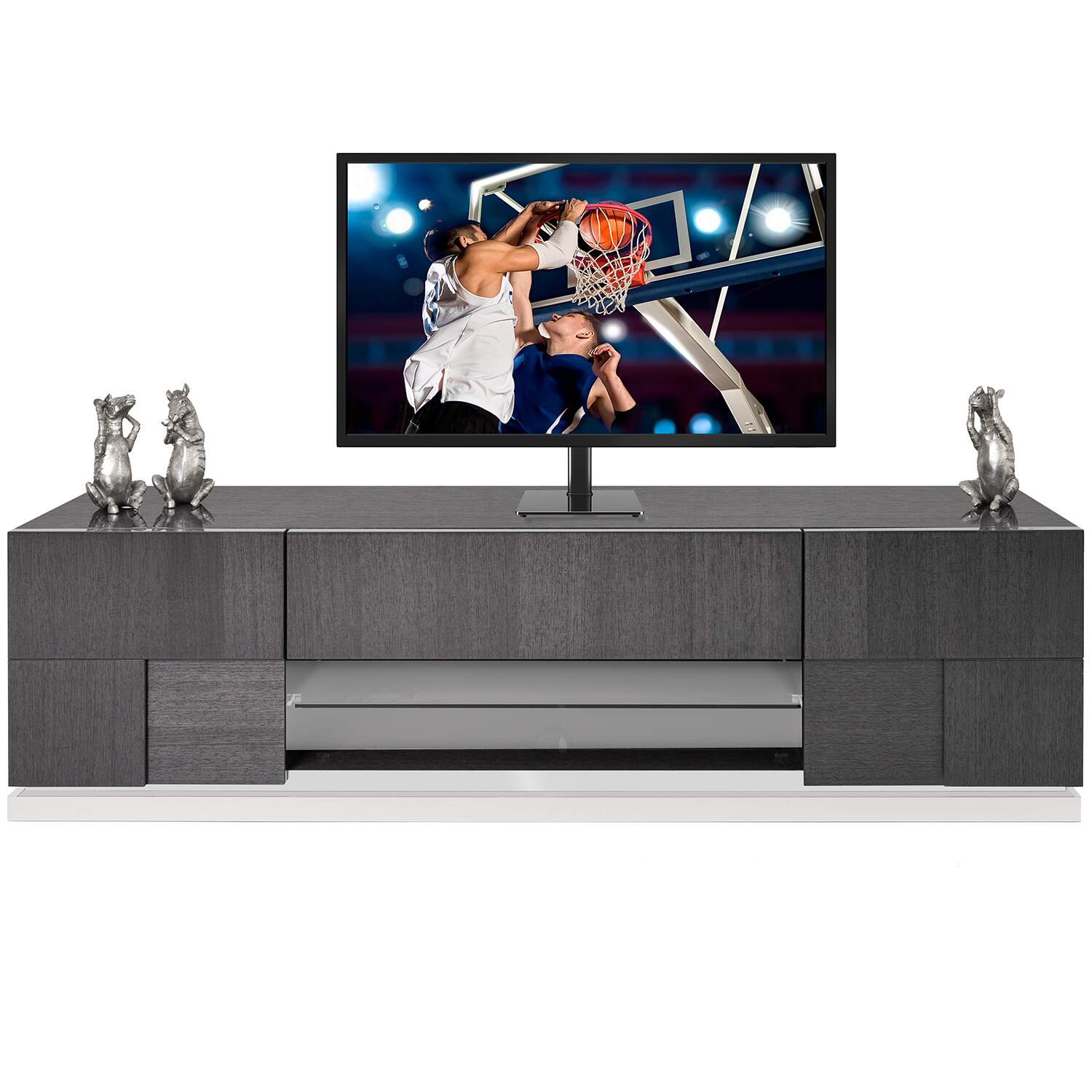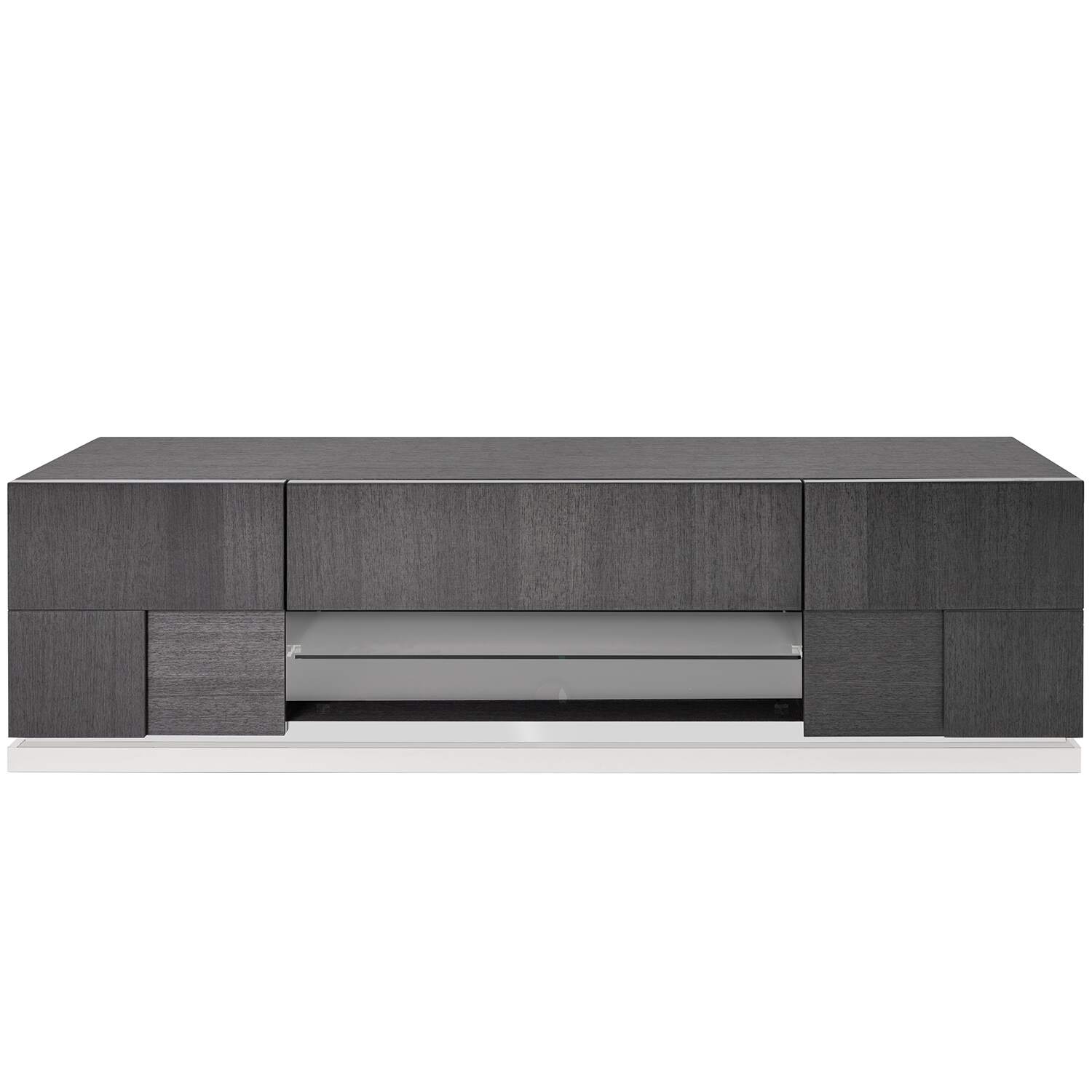 The Bella Grigio TV Base, made in Italy, has a stunning contemporary design with clean lines. Available in a high gloss grey koto finish, this TV base has detailed paneling, discreet storage cabinets, and a clear glass shelf.