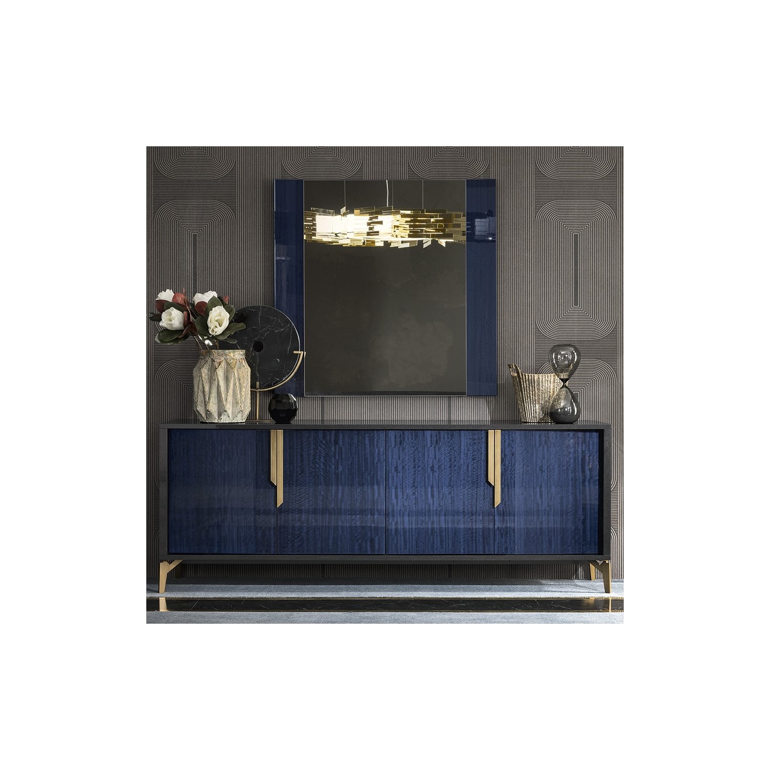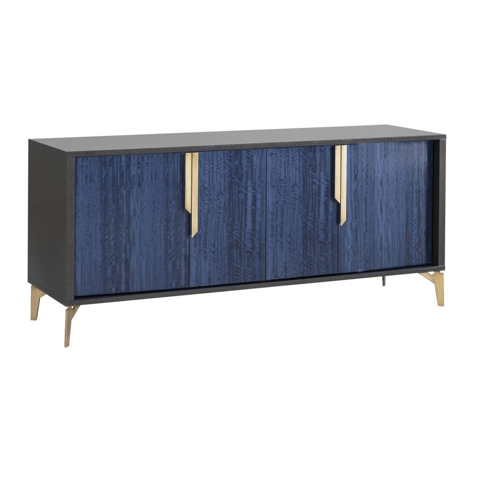 [0] => bella onda 4 door buffet - cobalt stained eucalyptus veneer w/ brushed brass accents. 70" x 20" x 31h"