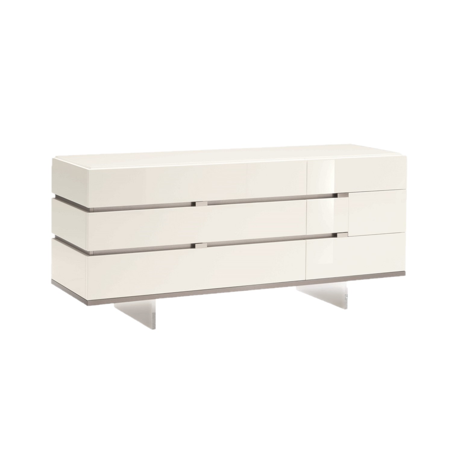 The Bella Vita dresser, made in Italy, captures the eye with its crisp geometric lines and high white gloss finish. Bella Vita brings bright, clean, and refreshing design to your bedroom space and is at once contemporary and timeless. The dresser has six spacious drawers and attractive metal accents.