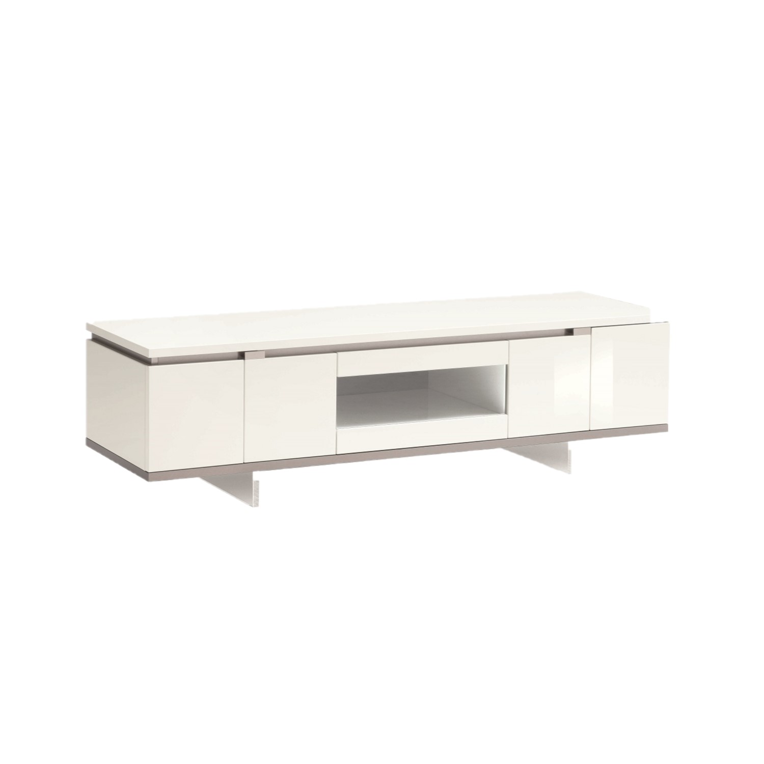 The Bella Vita TV base, made in Italy, captures the eye with its crisp geometric lines and high white gloss finish. Bella Vita brings bright, clean, and refreshing design to your home and is at once contemporary and timeless. The TV base has four spacious storage compartments, one drawer, and an open console space.