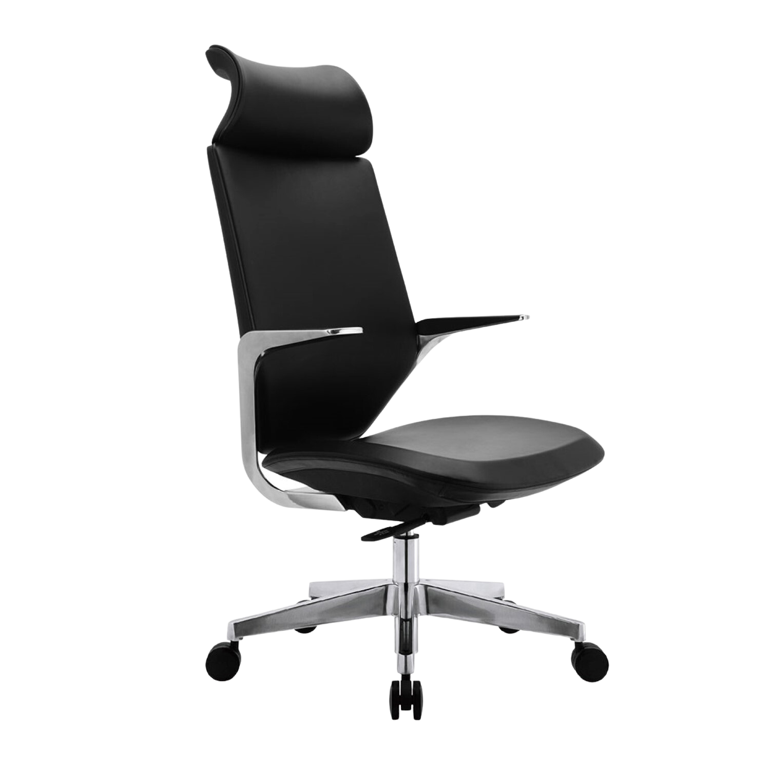[0] => benson high back office chair - polished aluminum / black eco pelle