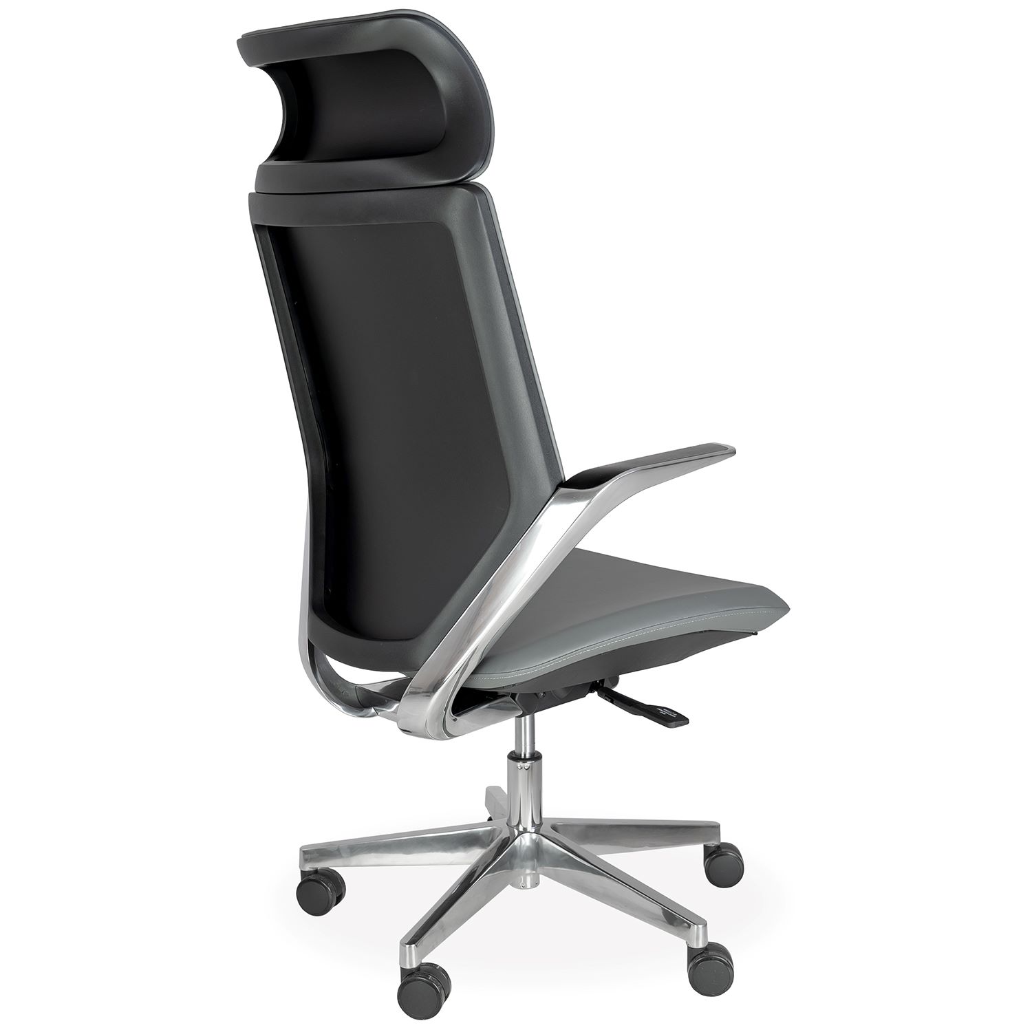 [0] => benson high back office chair - polished aluminum / gray eco pelle