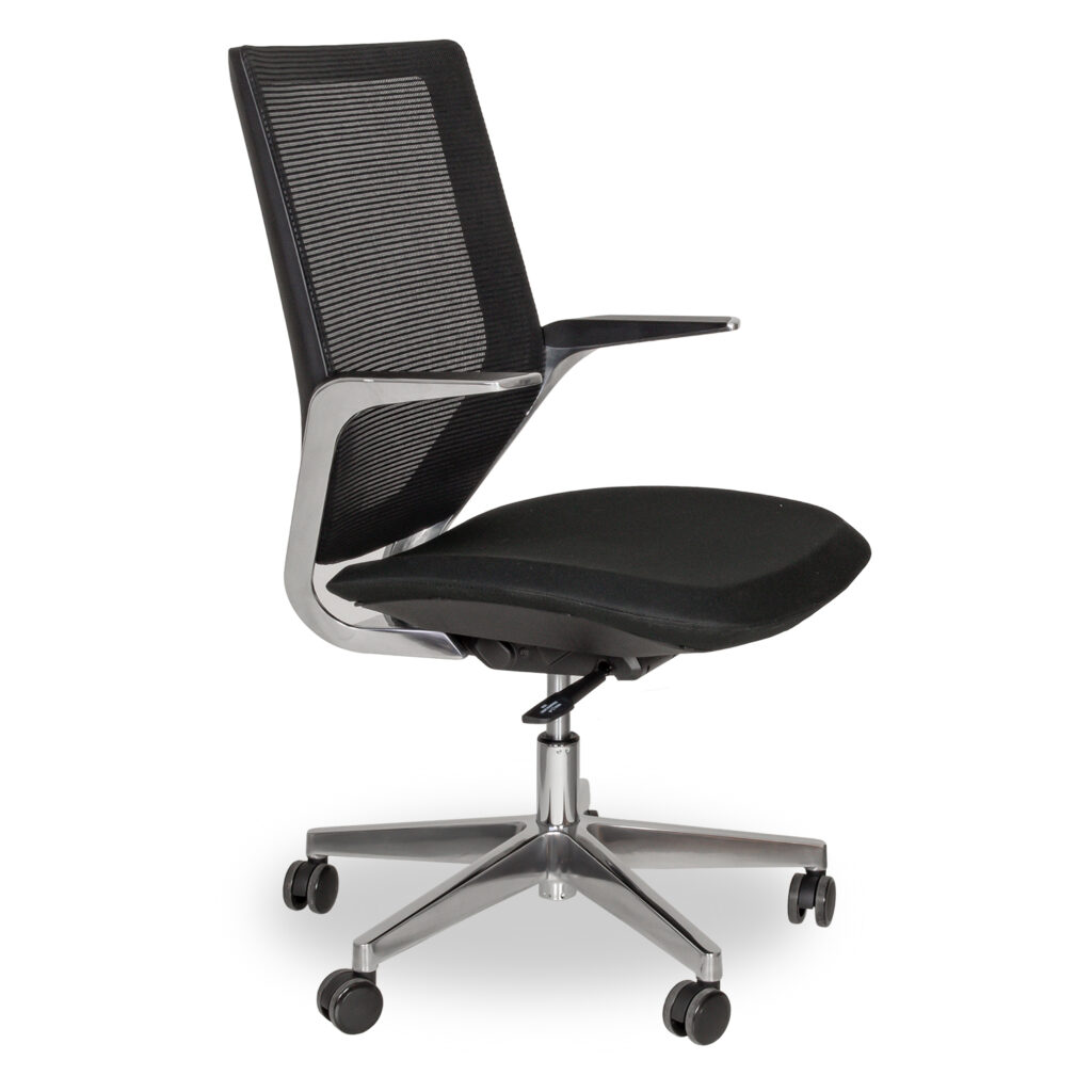 The Benson Low Back Office Chair, available with a black mesh back and black fabric seat, combines low-maintenance functionality with crisp contemporary style. The low back makes this chair easy to fit with any size of desk, from executive to laptop, while a height-adjustment lever allows you to find your perfect working height. Benson's polished aluminum base extends up the minimalist arms, and a locking tilt limiter keeps you as stationary or flexible as you want.