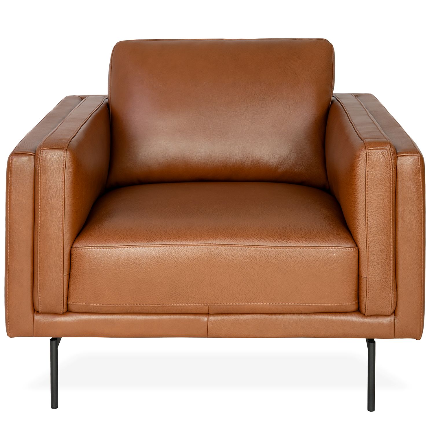 The Bentley Chair features sleek lines, a wide, deep seat, and Montana leather upholstery in a rich shade of brick brown. Bentley's double armrests add an extra layer of comfort, while its slim black metal legs lend it an appearance of lightness. Part of Copenhagen's Essentials Collection, Bentley's elegant simplicity and soft, buttery leather will add a welcoming ambiance to any room.