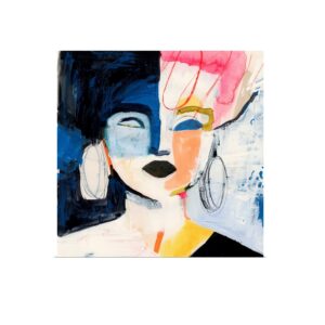 [0] => The Betrayal of the King Wall Art is a contemporary, cubist-inspired piece that uses geometric shapes, spirals, and stars to form an abstract human face. The combination of bold teals and yellows with monochromatic greys creates a cool-toned look for an intriguing yet soothing effect. Betrayal of the King has a gloss finish and bleeding borders.