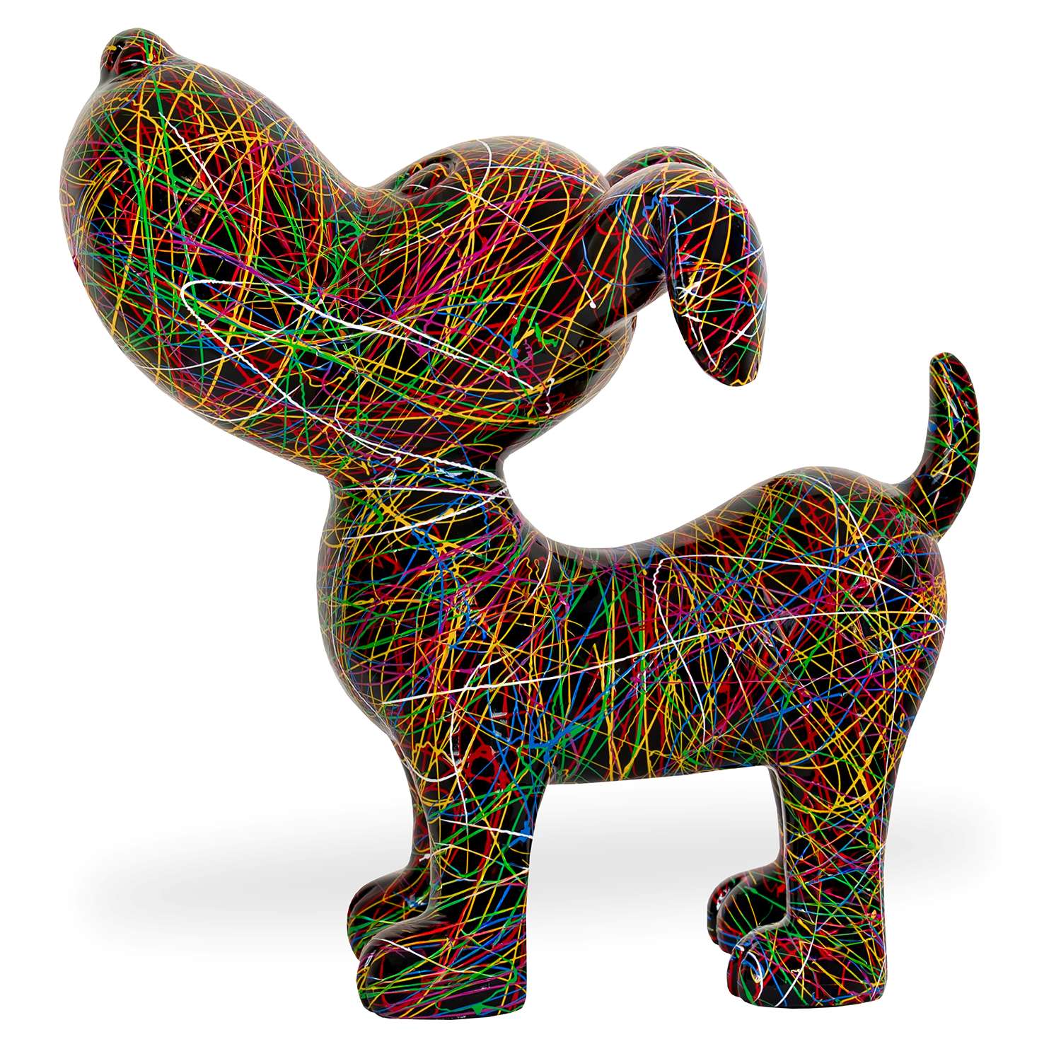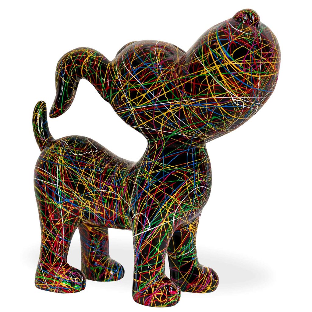Evoking the art of Jackson Pollock, the Black Snoopy Sculpture is drizzled with thin paint lines in red, yellow, green, blue, magenta, and white. The sculpture's cartoon-like proportions and upturned snout give it a sense of fun and whimsy, making it a perfect gift for lovers of pop art. Black Snoopy is made of resin with a glossy finish and can easily stand on any flat surface.