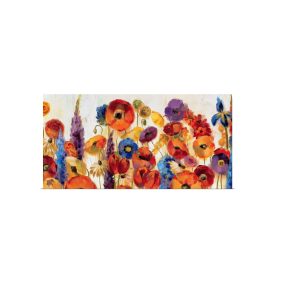 Bright Moments II is a joyful canvas wall art that also has an elegant, refined feel. The deep, bold tones of the depicted flowers are softened by their organic silhouettes, guiding the eye across the canvas to appreciate each one. The darker border enhances the golden bursts within the center, with each tone perfectly complementary to the others.