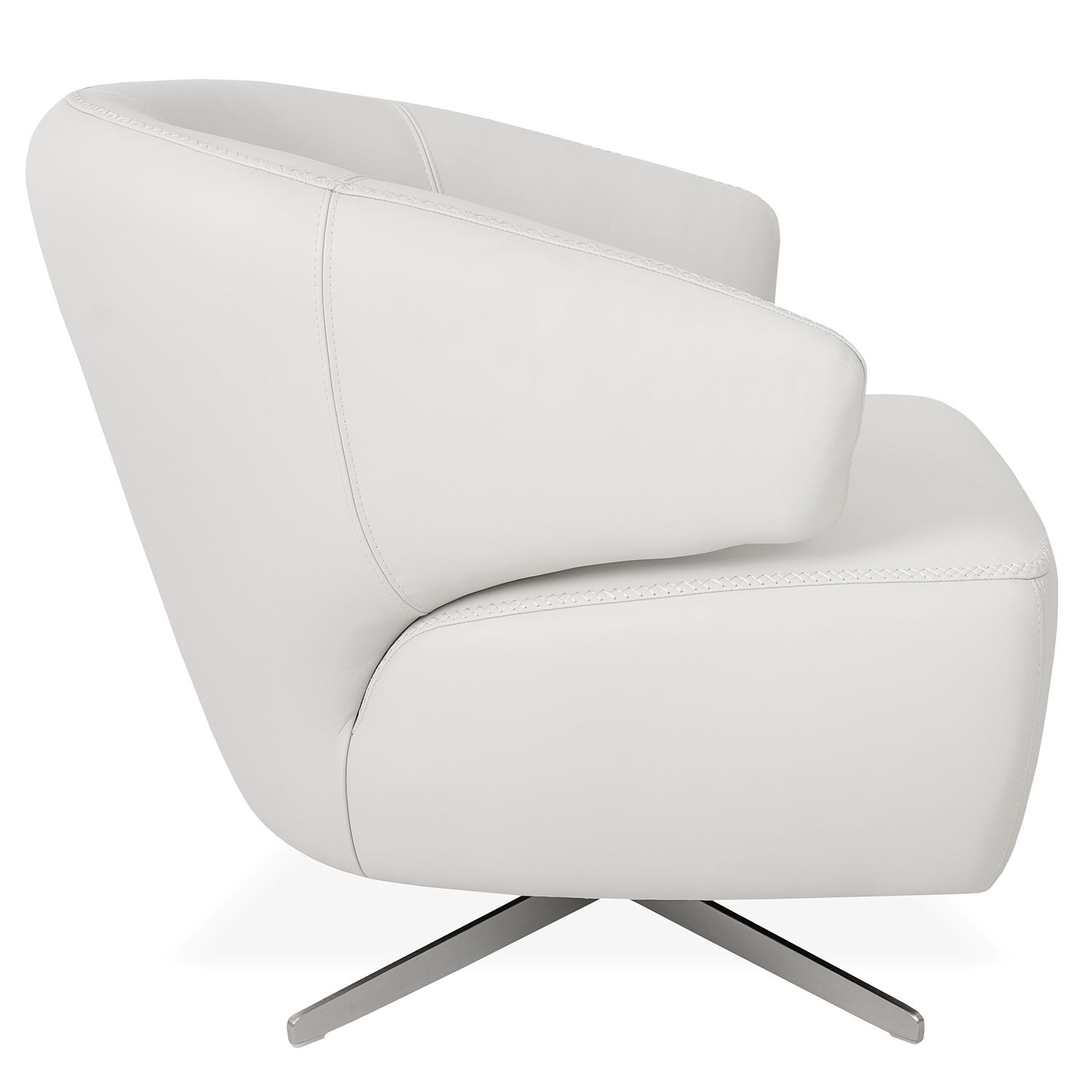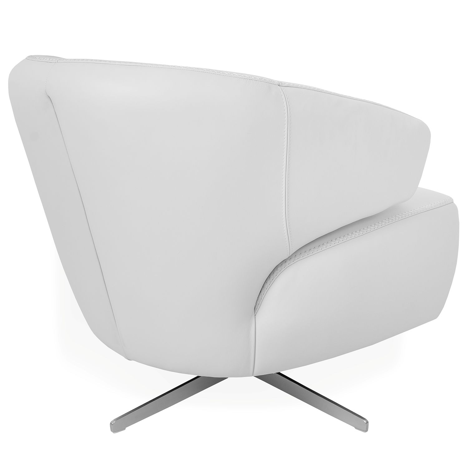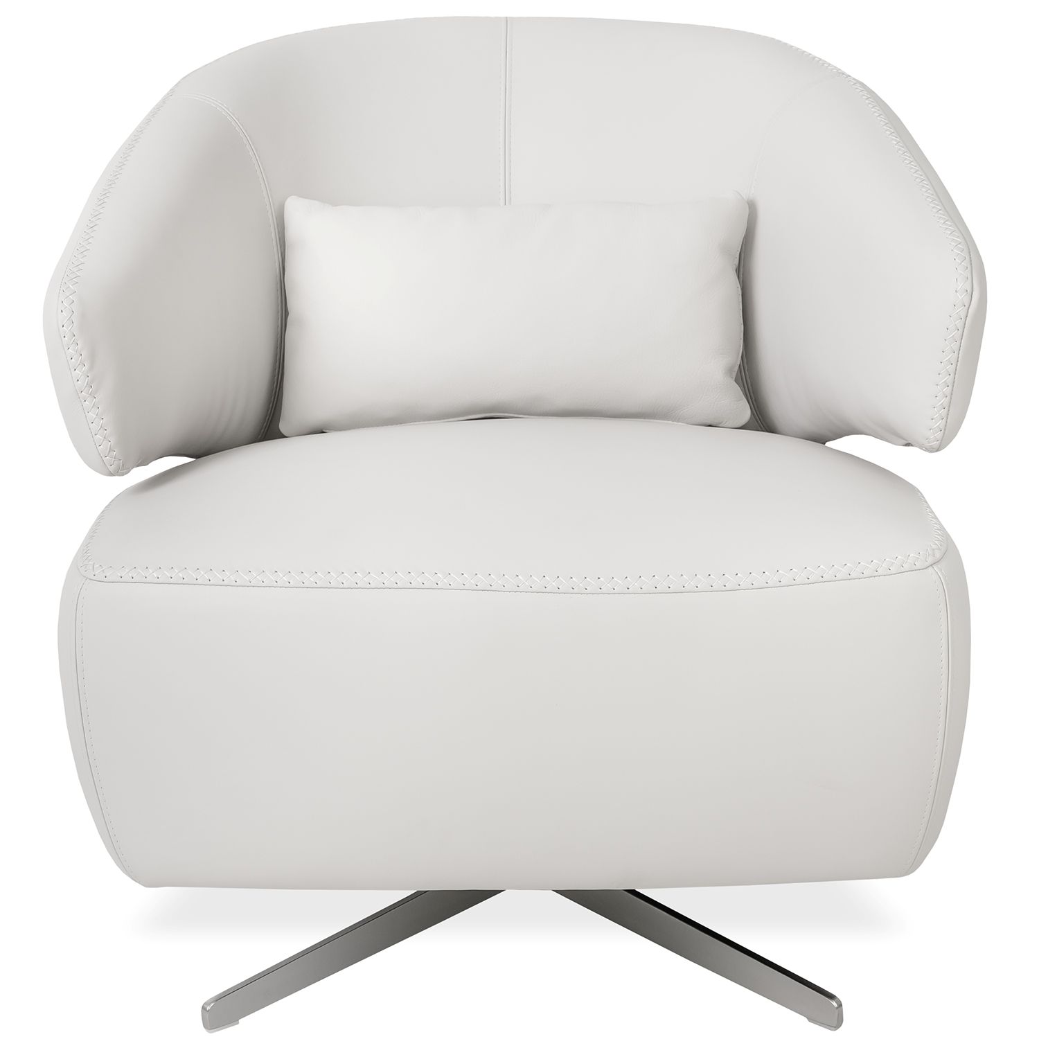Ease into comfort with the Bryson Swivel Chair. Shown in frost leather with a sculpted seat back, diamond accent stitching, and matching lumbar pillow, Bryson provides both support and style. The brushed stainless steel swivel base adds a contemporary touch to any living room, reading nook, or home office. A part of our Essentials collection, Bryson blends sophisticated design with everyday comfort.