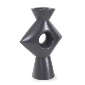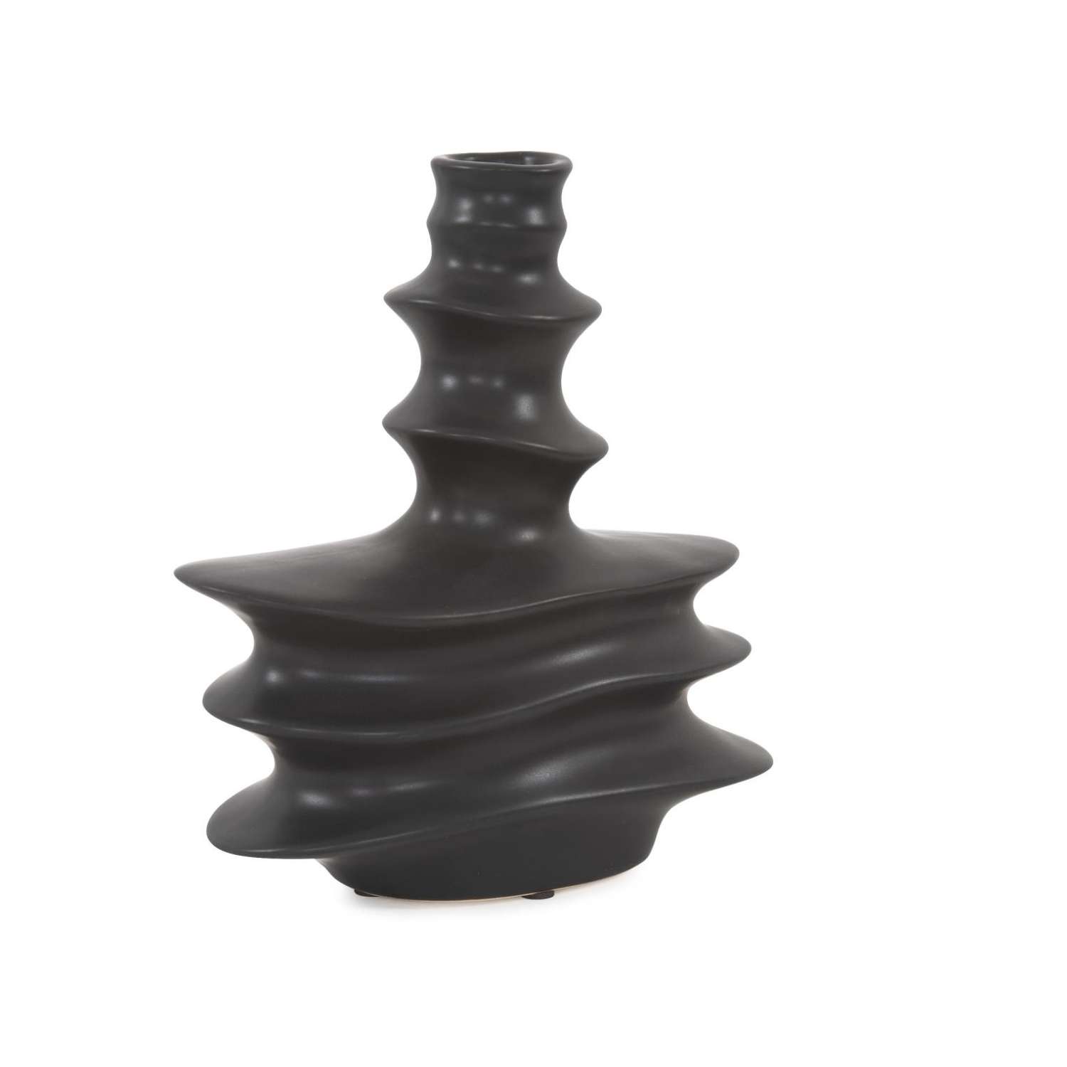 [0] => The Cairn Abstract Short Vase is made of ceramic with a hand-applied matte black finish, and has an organic shape with a wide body and narrow neck sculpted into flowing tiers and ridges. Inspired by the work of sculptor Robert Cairn, this vase's edgy form makes it a great conversation piece for modern and contemporary interiors.