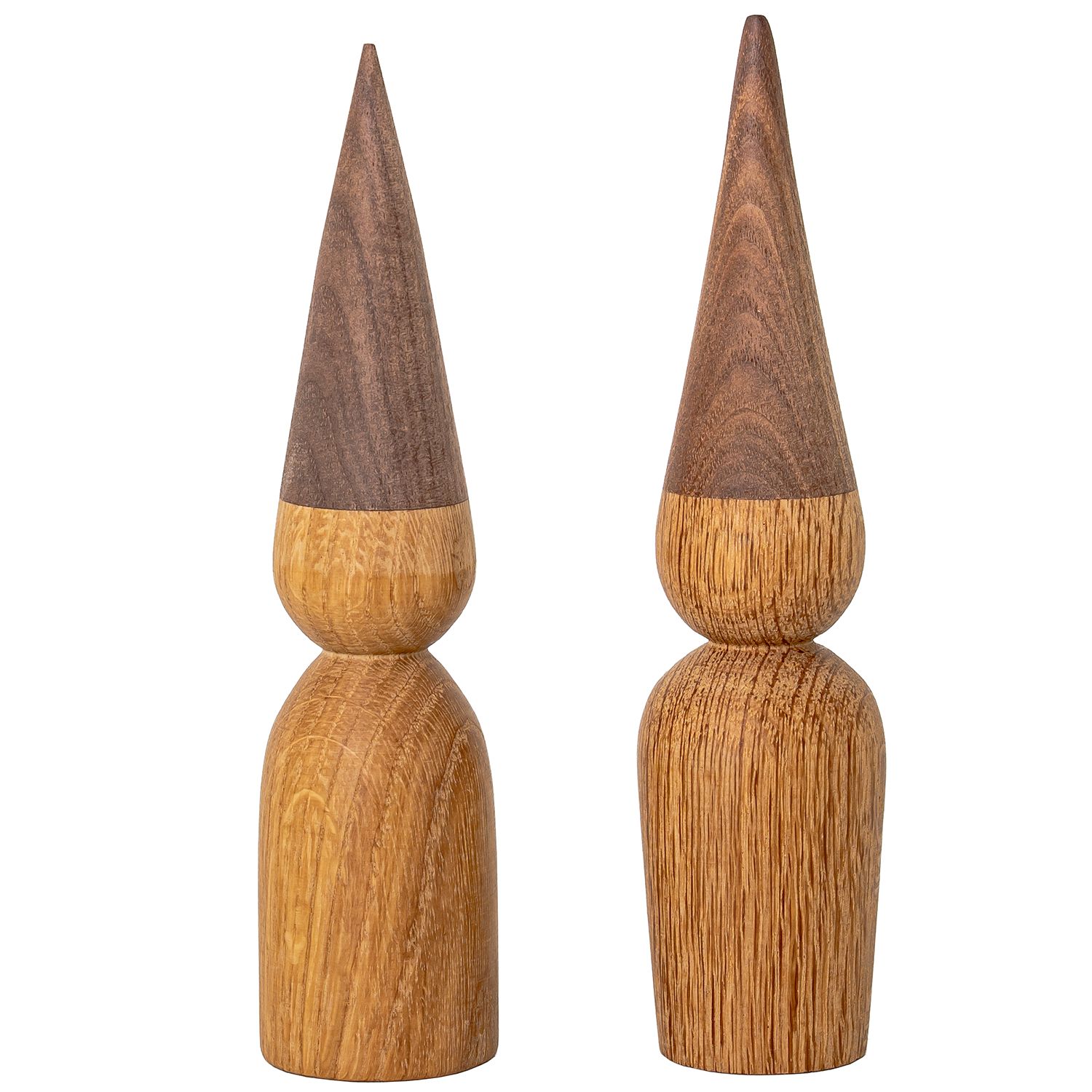 Handmade in Denmark from repurposed wood, the Caroline and Christian Elves are here to liven up your home for the holidays. Each elf has a clean, simplified form with a body made of walnut and a cap of dark oak. Display this set of 2 elves with their "parent" elves Ellen and Esben, or mix and match with elves in other finishes for a cheerful display.
