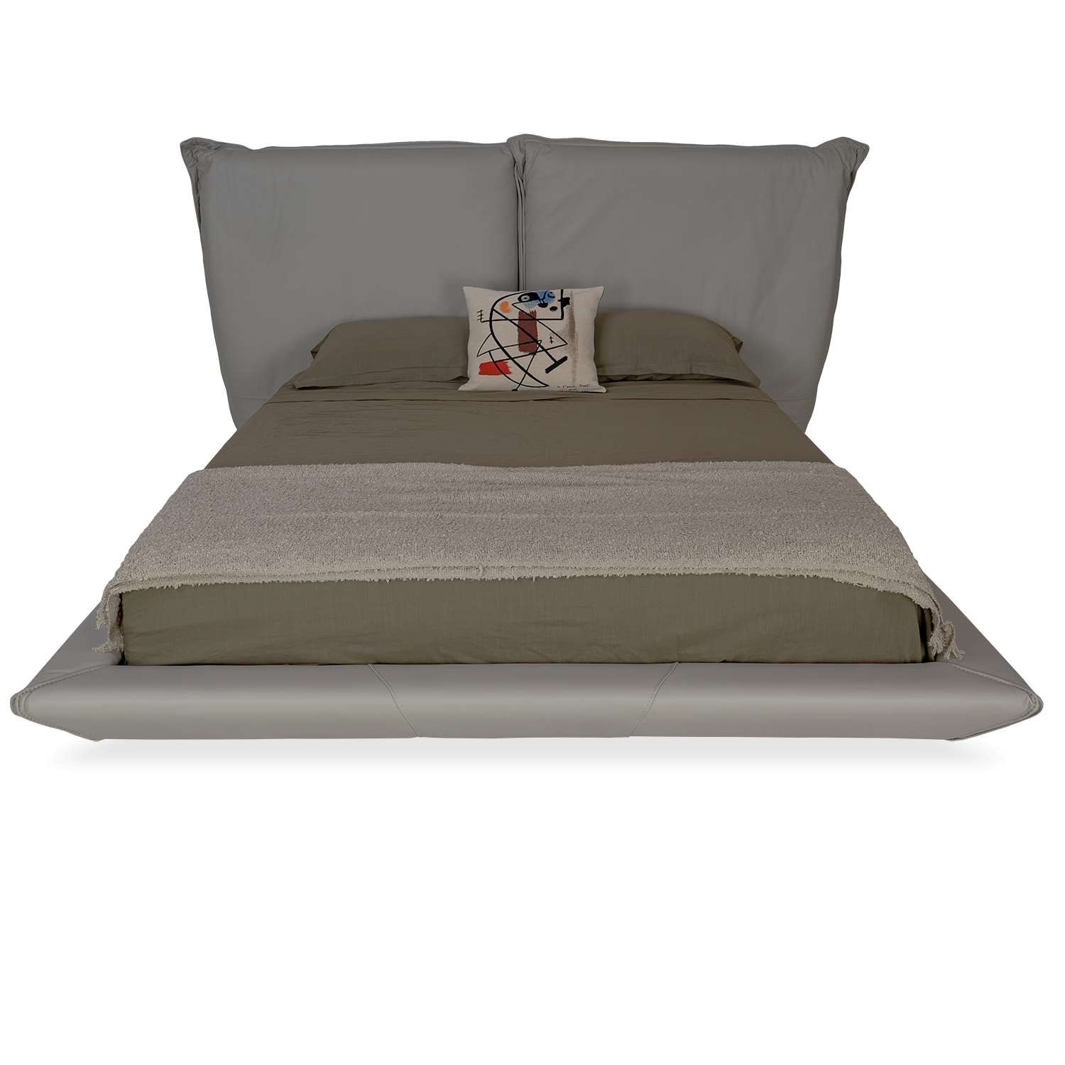 [0] => The Casablanca King Bed features a bold silhouette, grey Brando leather upholstery, integrated LED lighting, and a slatted construction. Casablanca's dramatic headboard is composed of two large, cushioned sections with tailored edges that evoke the look of pillow shams. Embellished with accent stitching, the lower frame is inset with remote-controlled LEDs that offer mood lighting or a helpful nightlight. This Italian-made bed has everything you need to bring your bedroom ambiance to the next level.