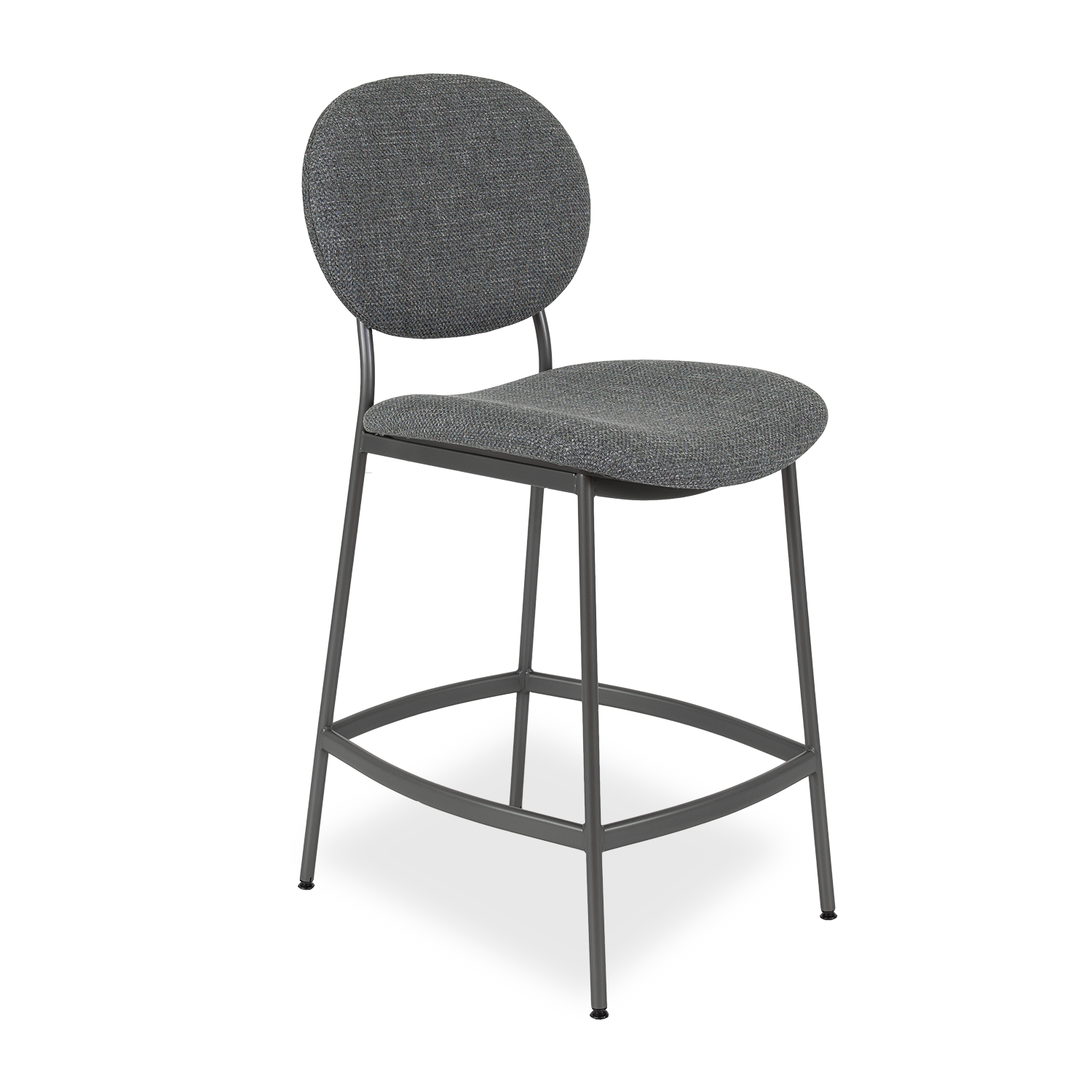 The Cassandra Counter Stool is both cozy and chic, with a curved backrest and seat that hug and comfort your body as you sit. Cassandra's minimalist form allows it to fit well with any contemporary dcor, while making a clean, subtle design statement. Available with an opaque, metallo metal frame, and tuxedo fabric upholstery that features variegated tones of grey.