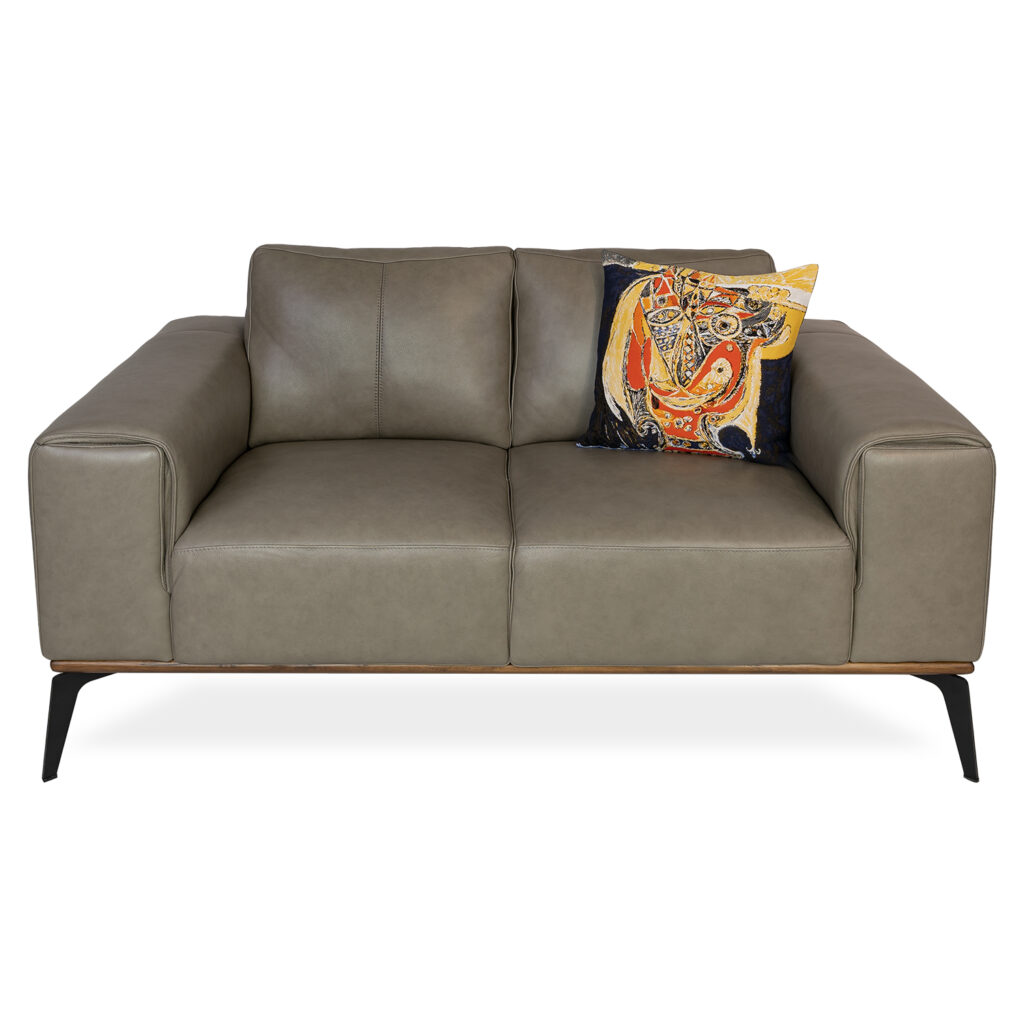 [0] => chelsea 2 seat loveseat in missouri top-grain leather stone 680 with black powder coat legs. 63.7" long.
