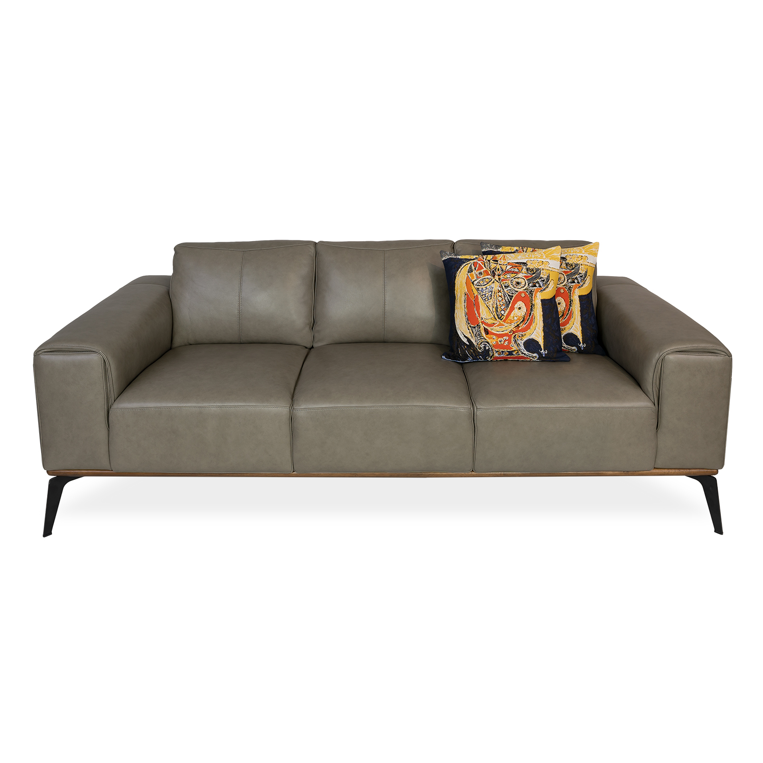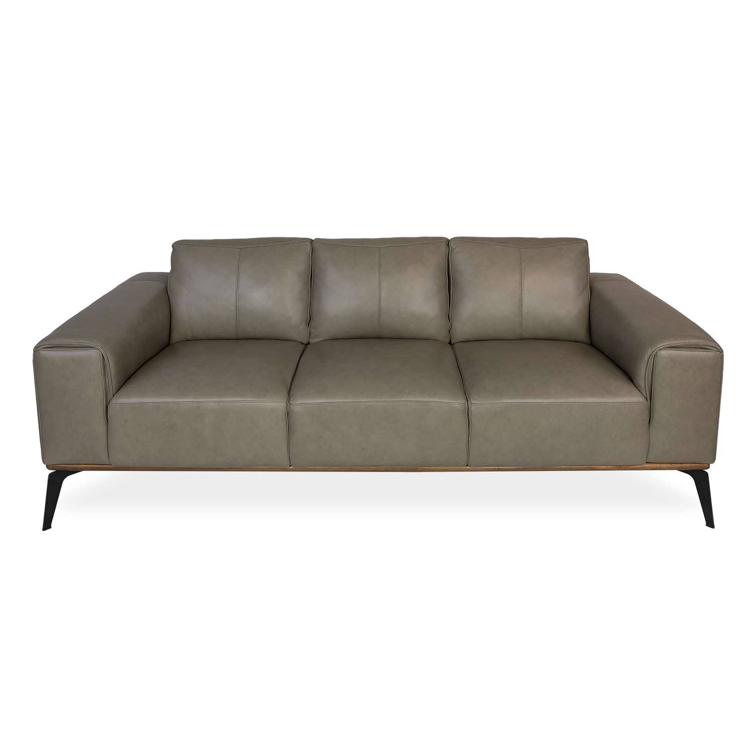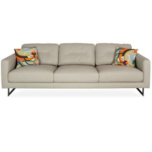 [0] => chelsea 3 seat sofa in missouri top-grain leather tek 680 stone with black powder coat legs. 86" long.