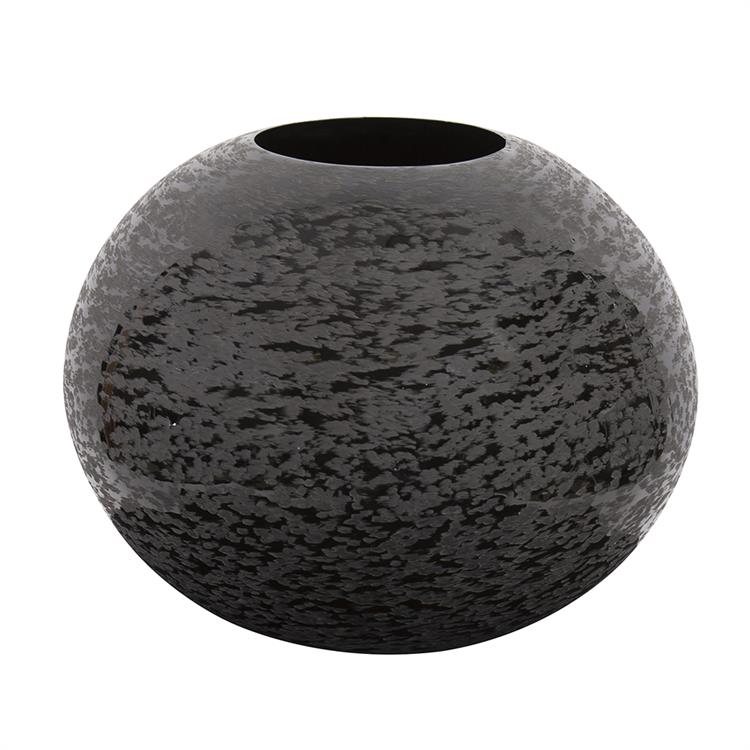 [0] => The Chiseled vase takes the shape of a glossy round orb and is crafted from iron. The vase has a unique textured surface that makes it appear two-toned.